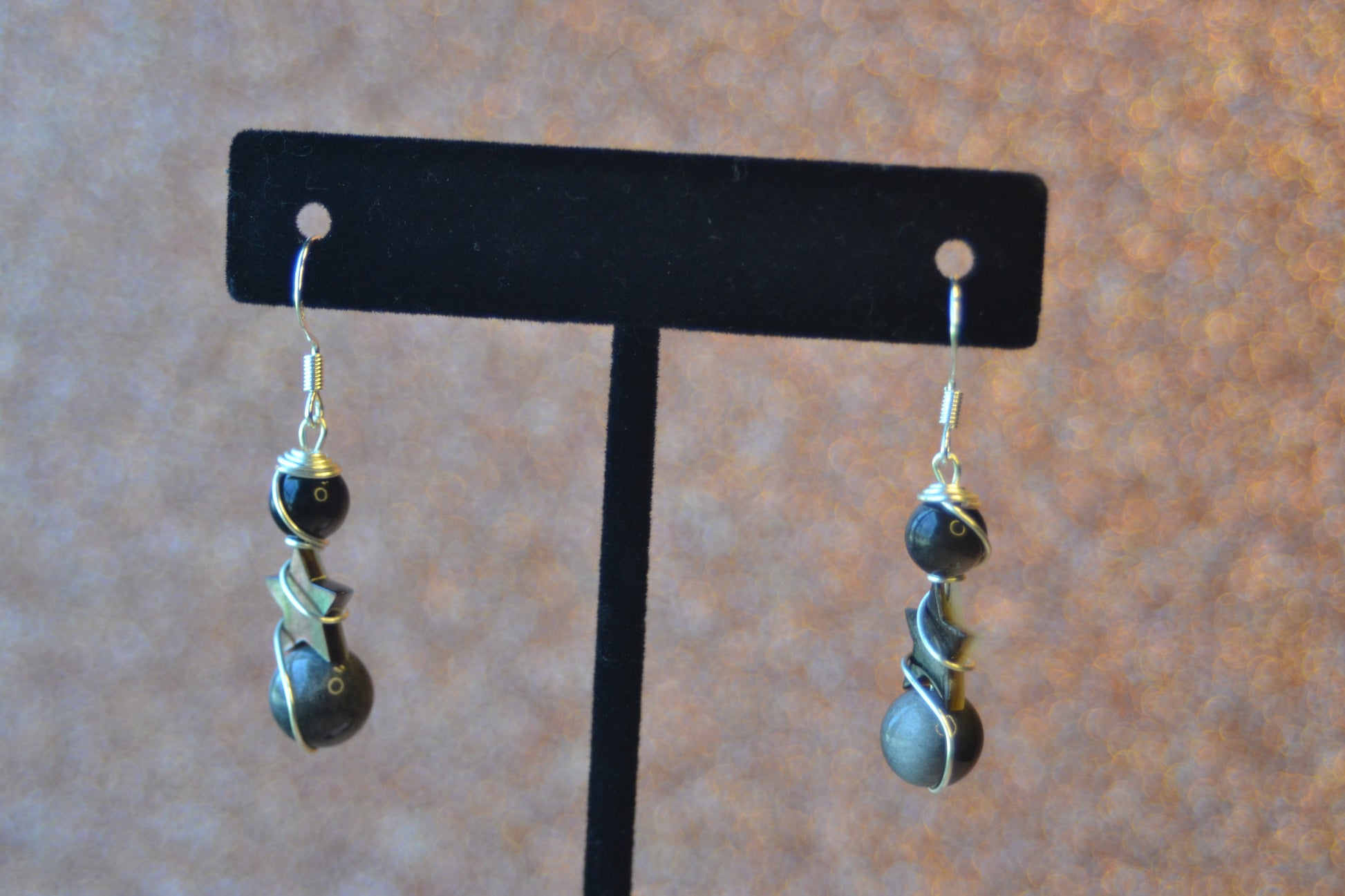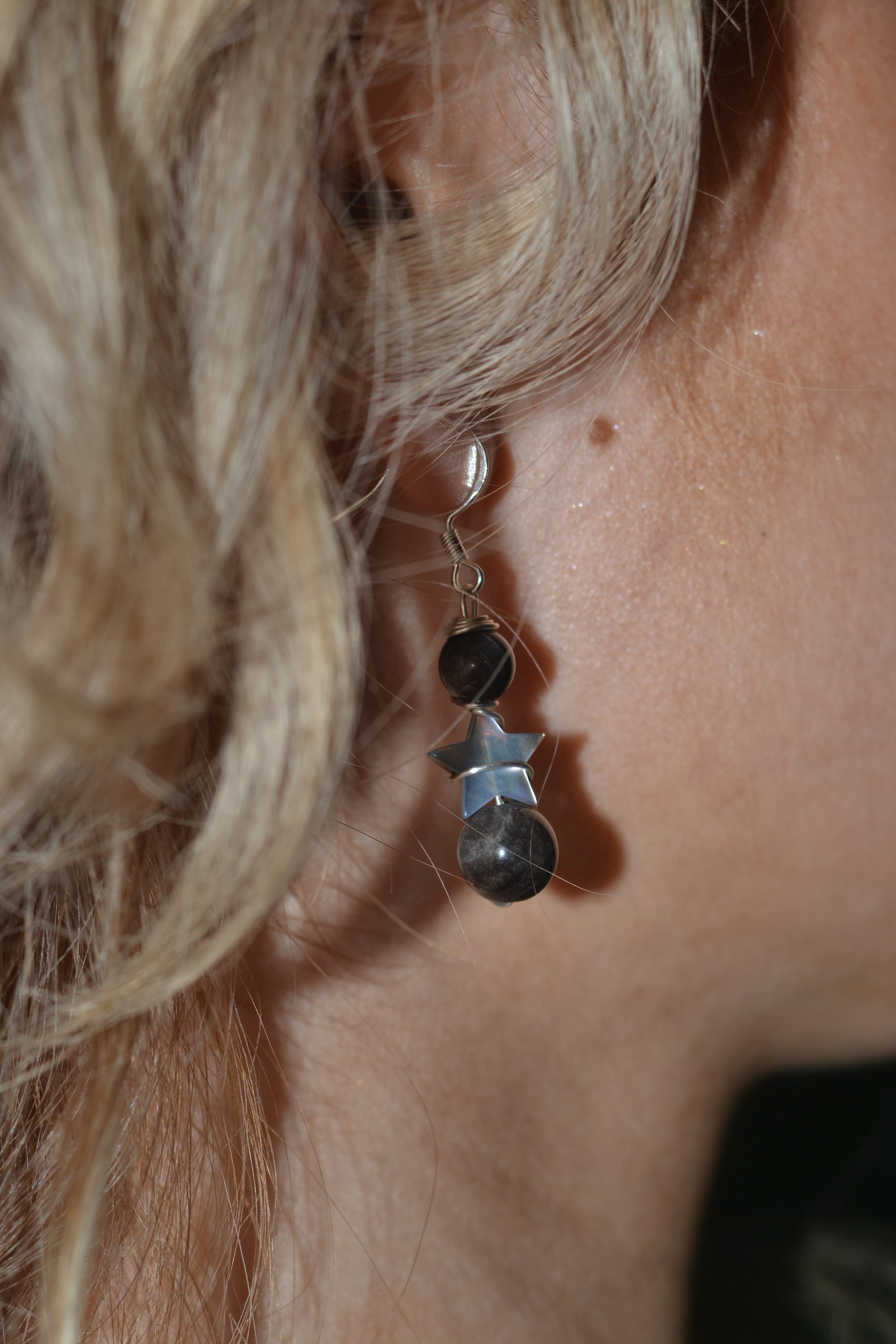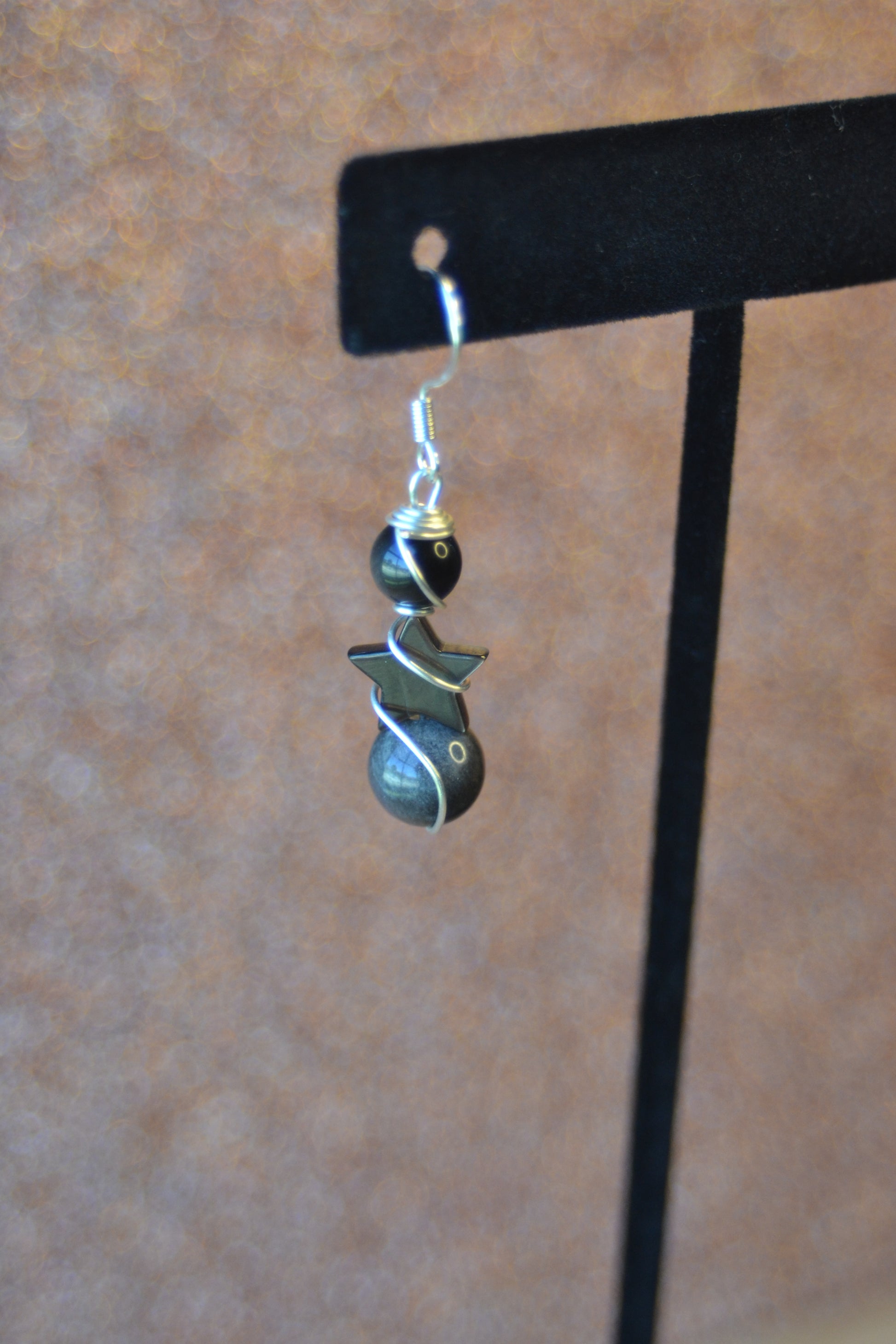 Step into your strength and mystery with these Shadow Star Earrings, crafted to honor the beauty in darkness and the power of protection. Each 1.5-inch earring is wrapped in sterling silver wire and features a celestial 3-tiered design:
