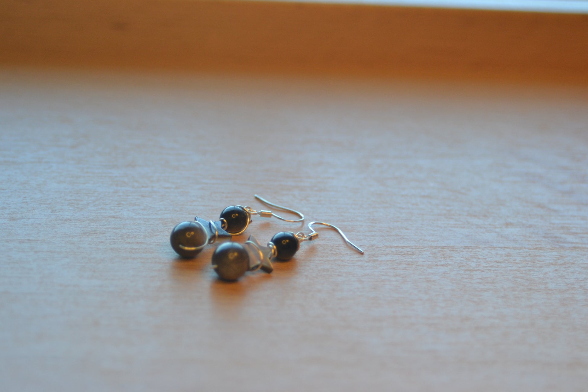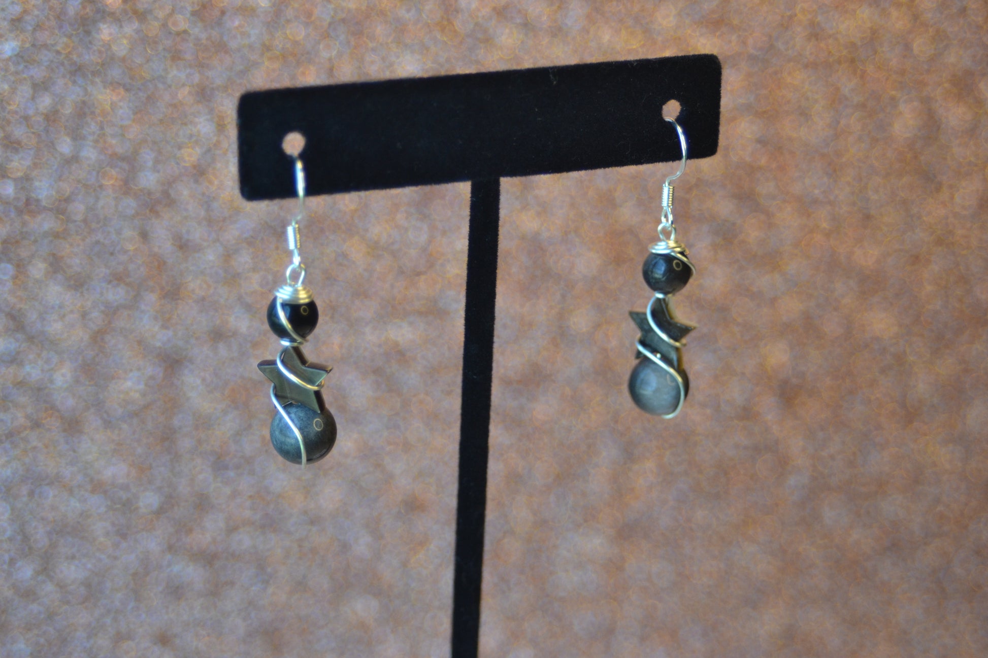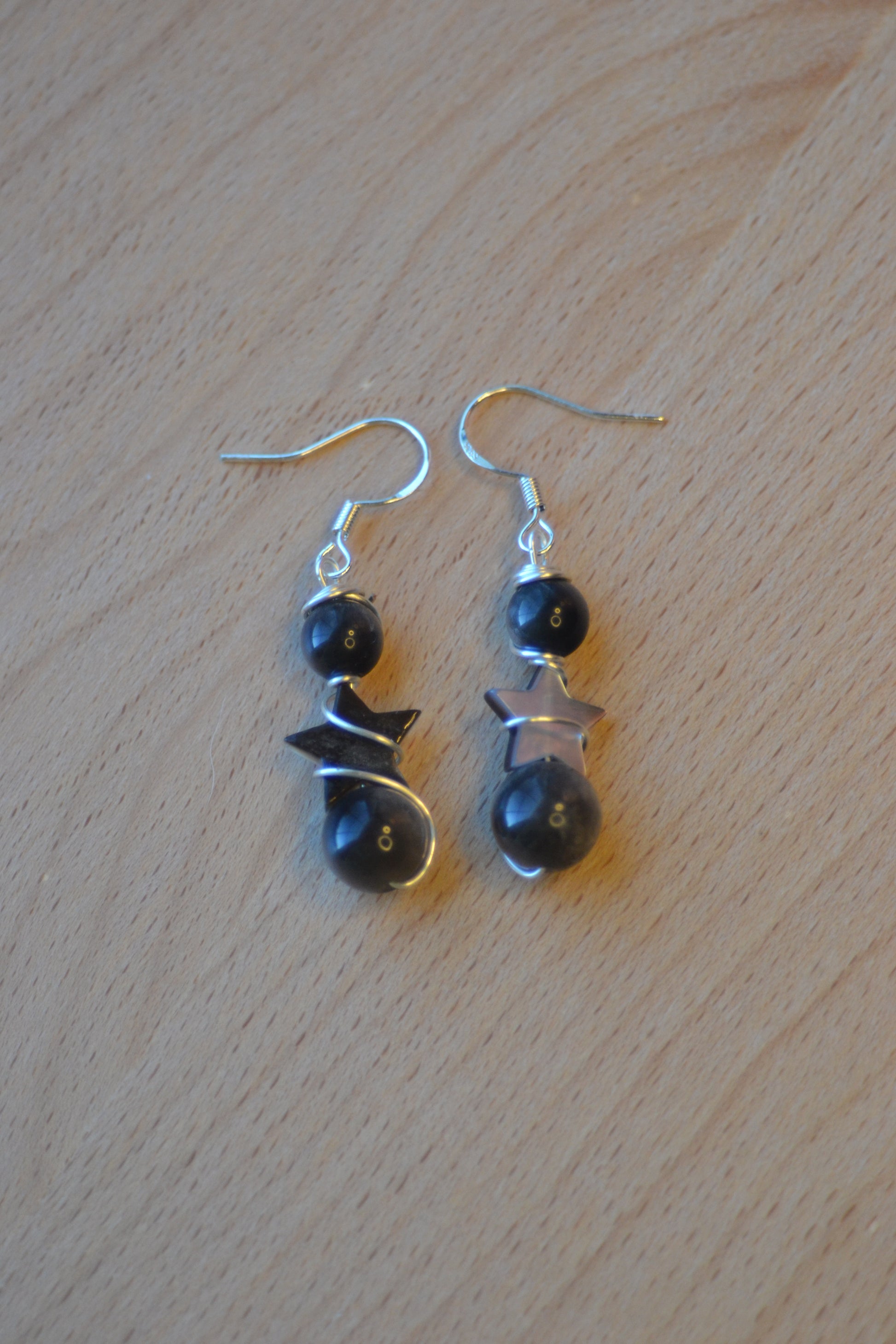 Step into your strength and mystery with these Shadow Star Earrings, crafted to honor the beauty in darkness and the power of protection. Each 1.5-inch earring is wrapped in sterling silver wire and features a celestial 3-tiered design: