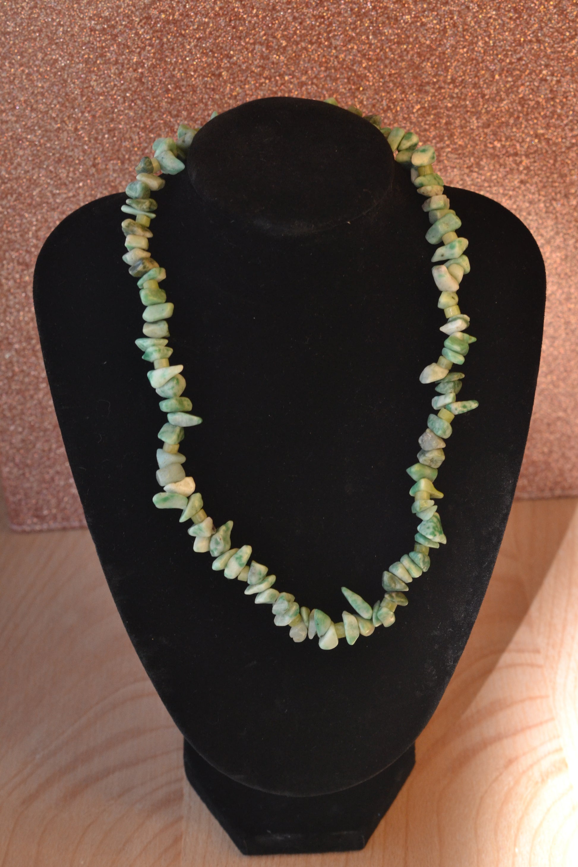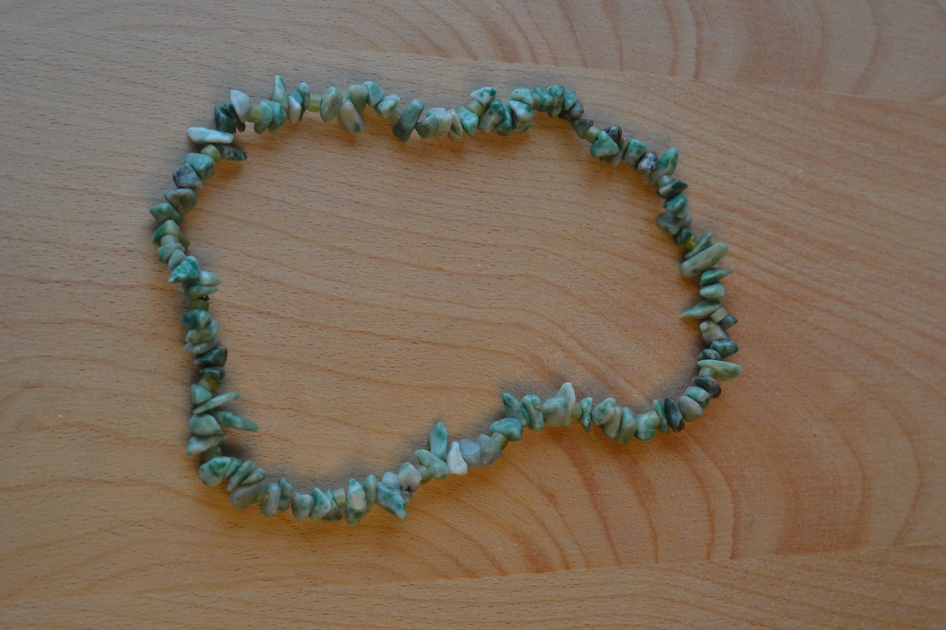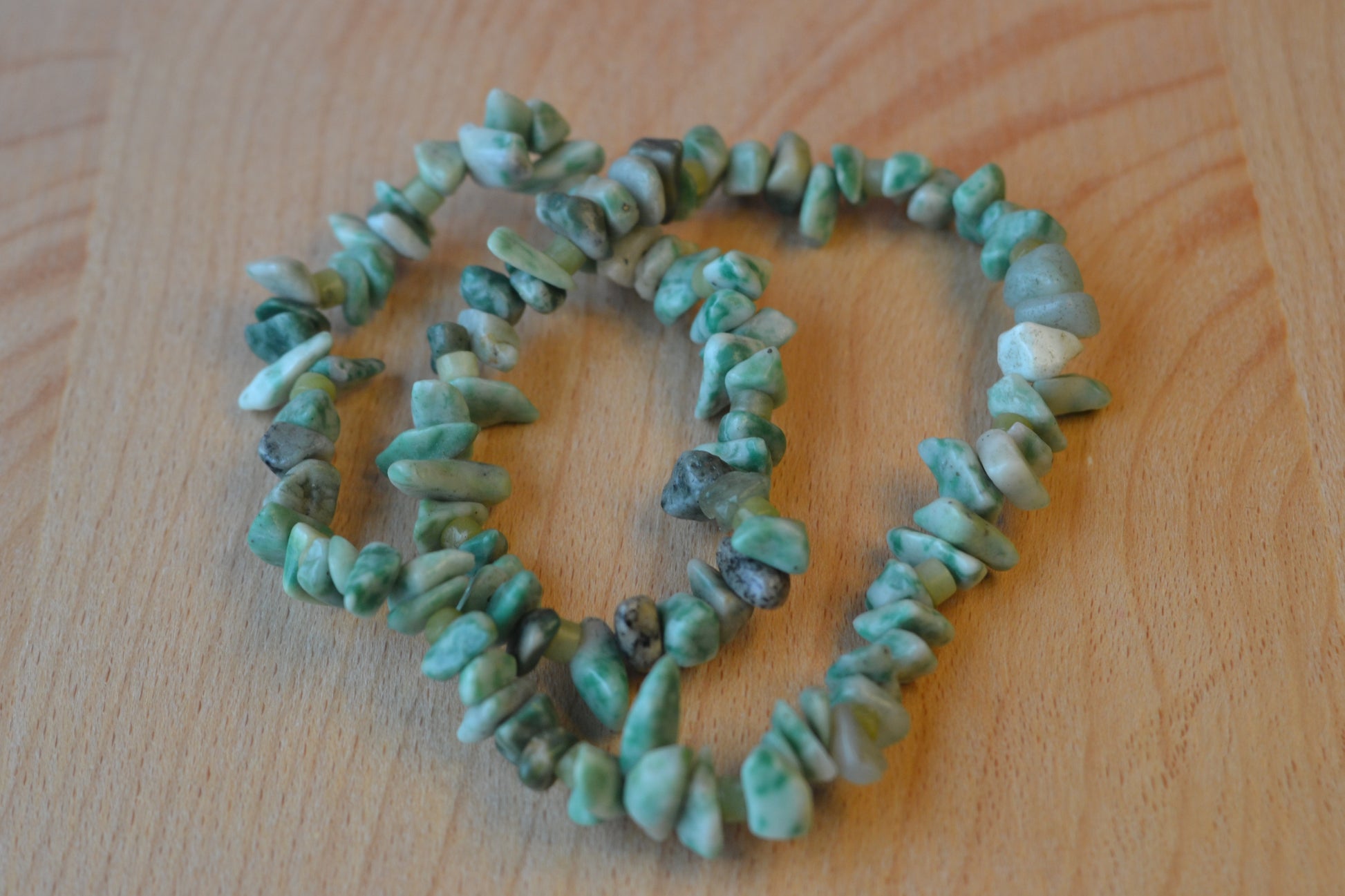 Materials: Spotted green jasper chip beads, jade spacer beads