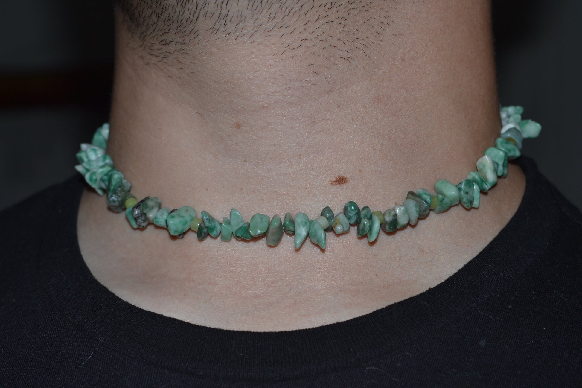 Spotted Green Jasper & Jade Choker β Masculine Grounding & Warrior Energy (16")