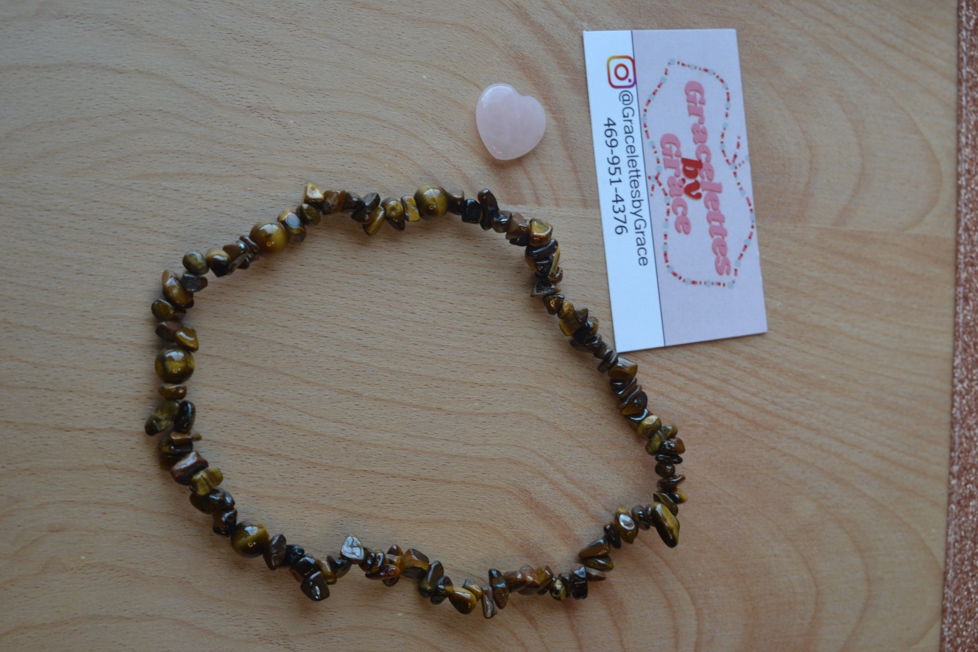 Tiger’s Eye Chip Choker with 8mm Round Spacers – Bold Energy (16”)