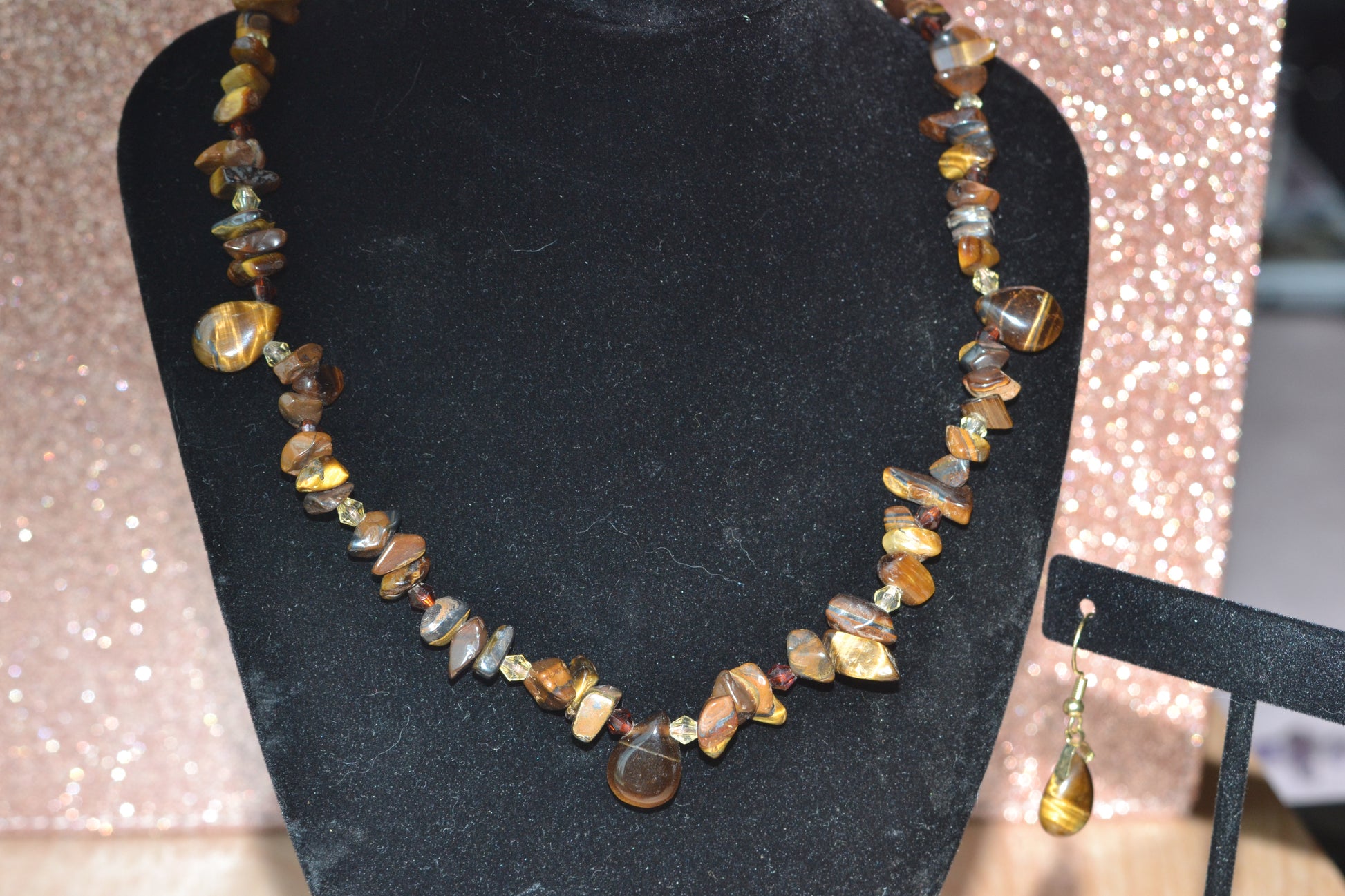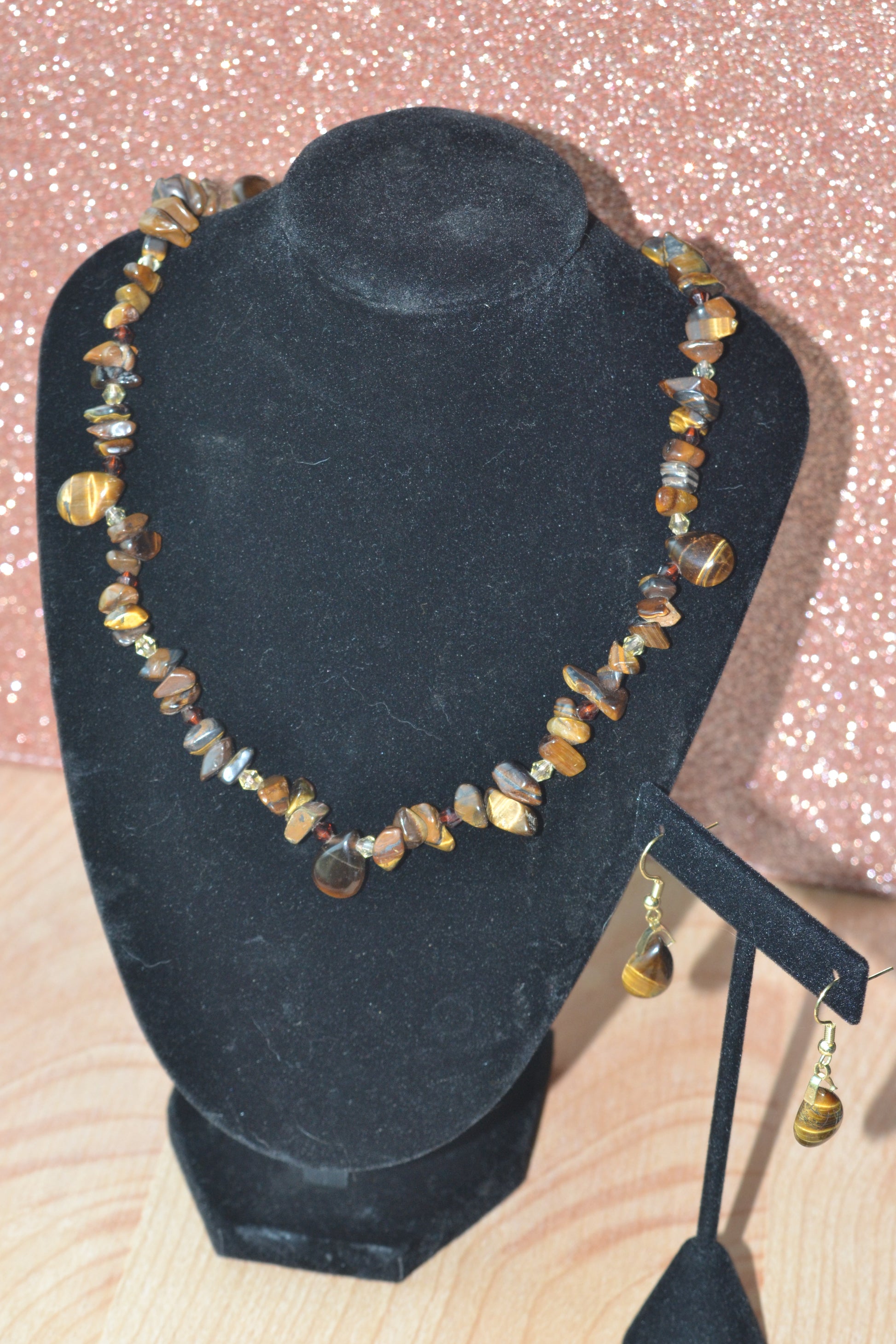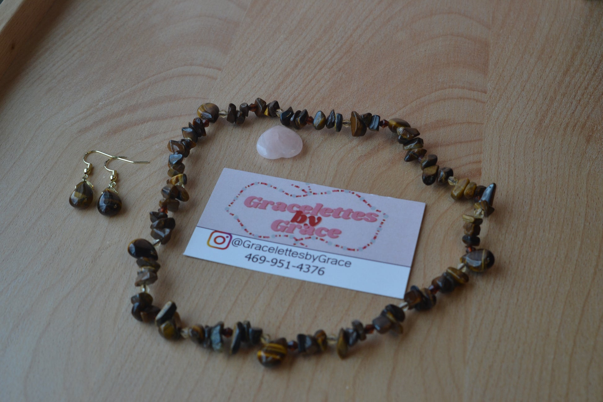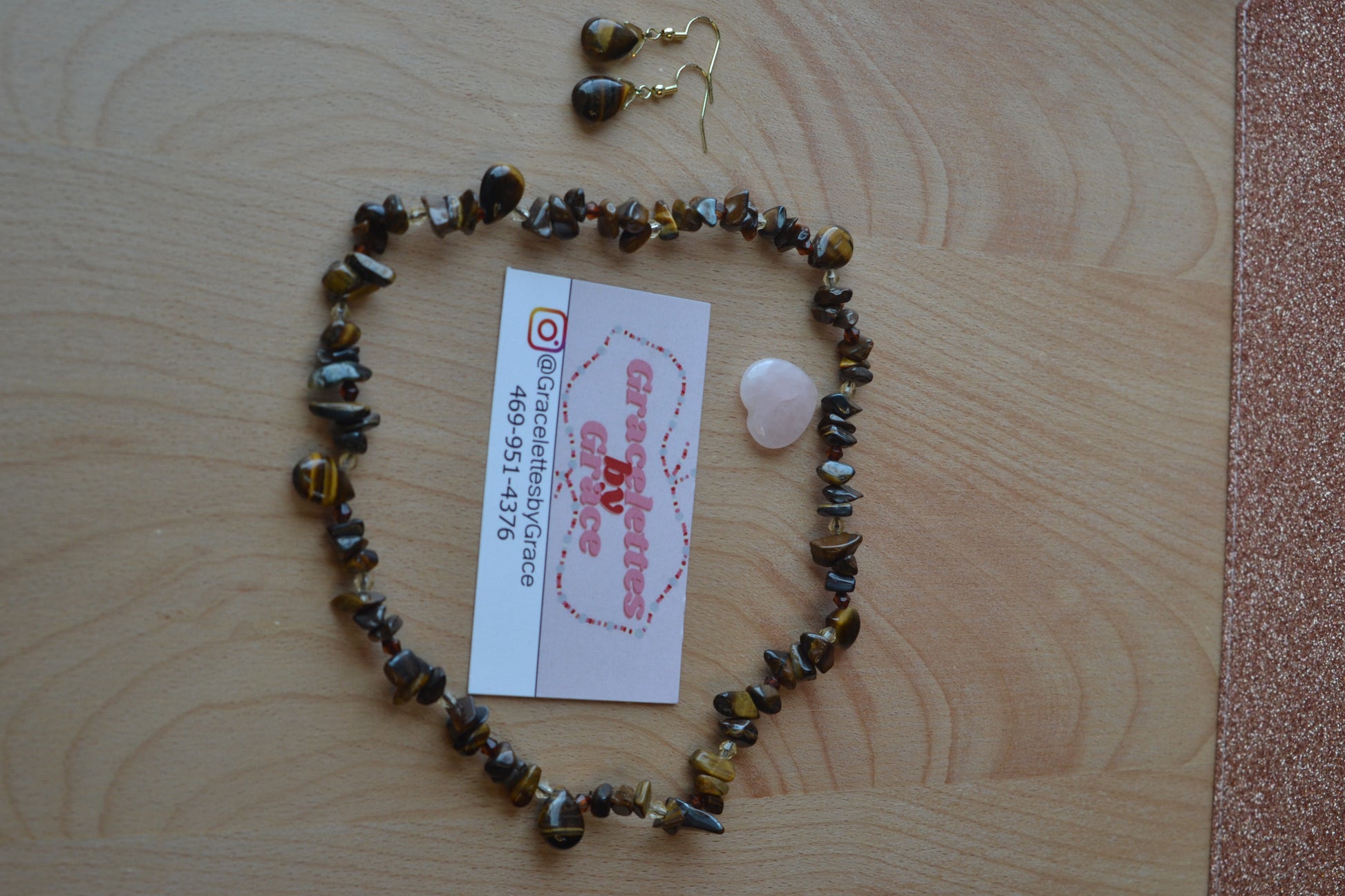 Tiger’s Eye Choker & Teardrop Earrings Set – Grounding & Confidence Jewelry