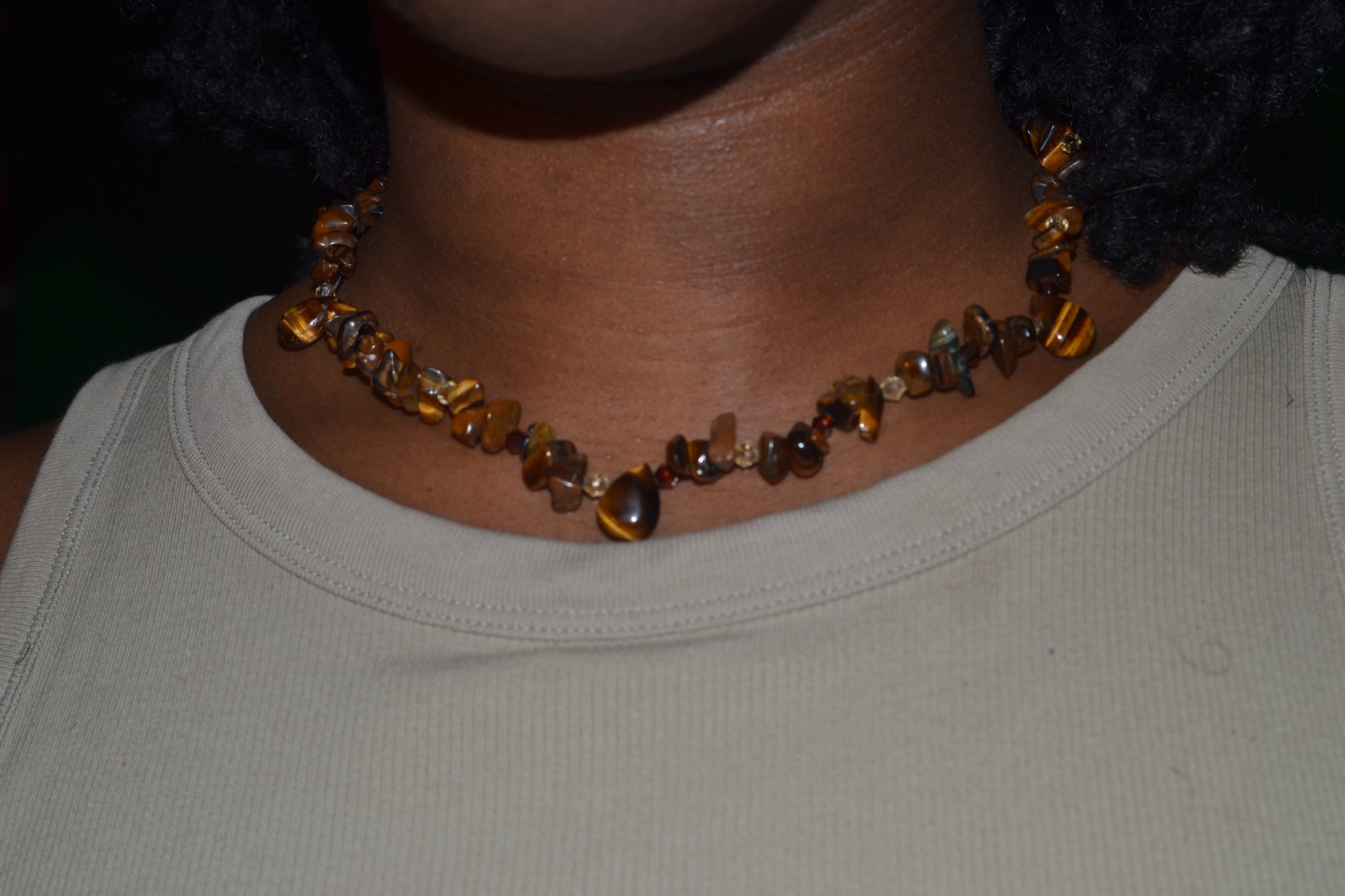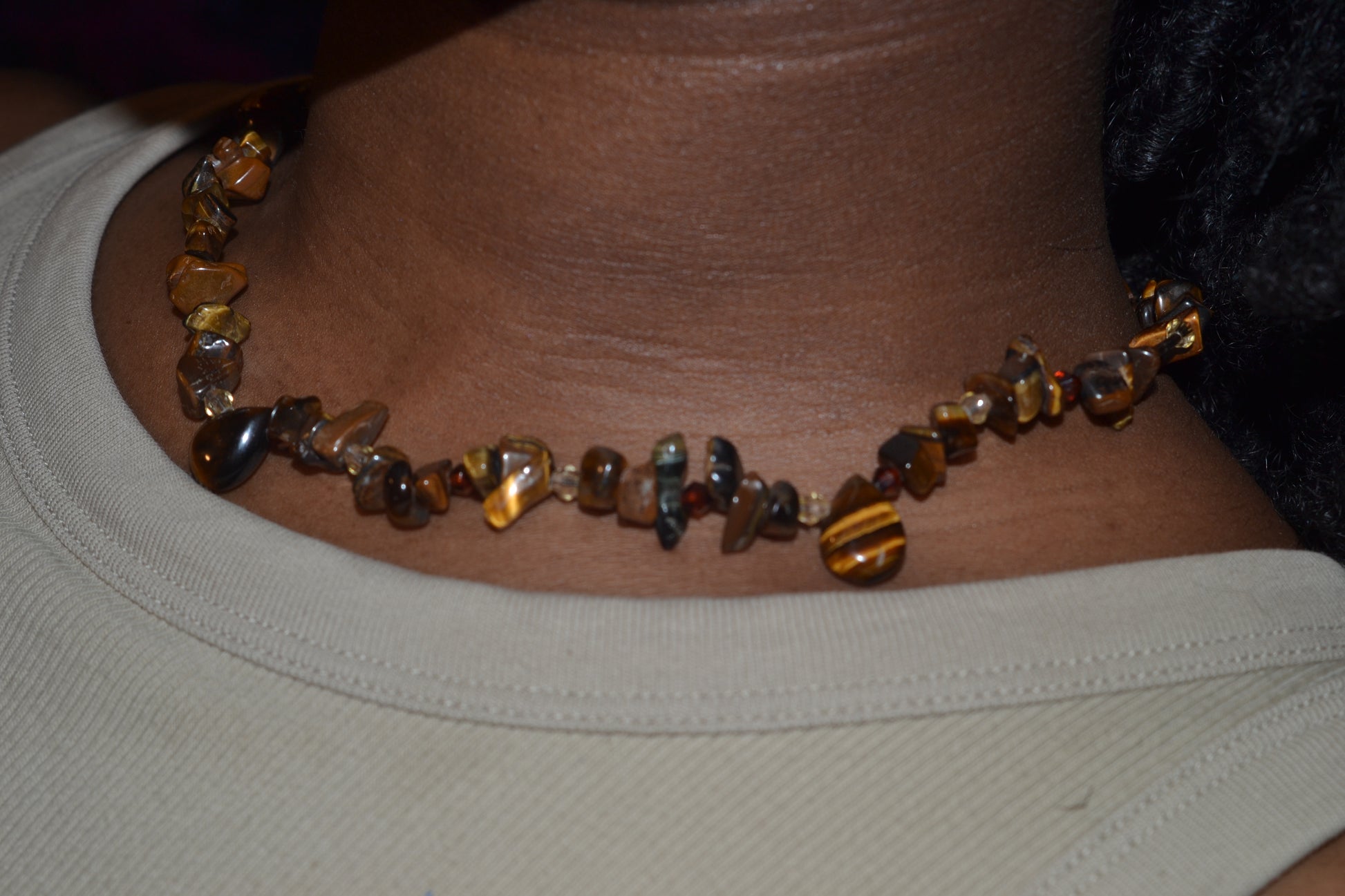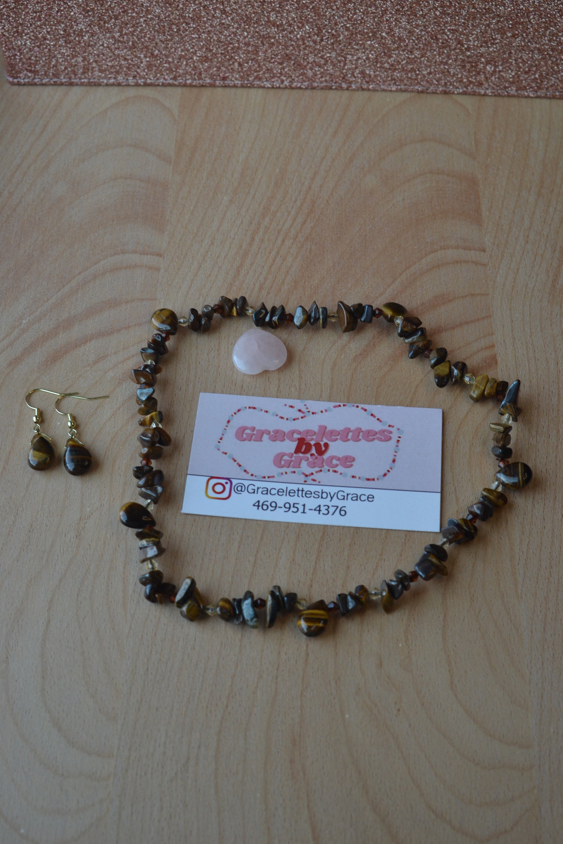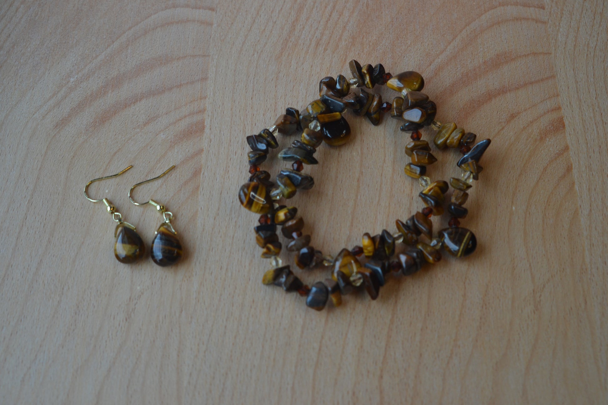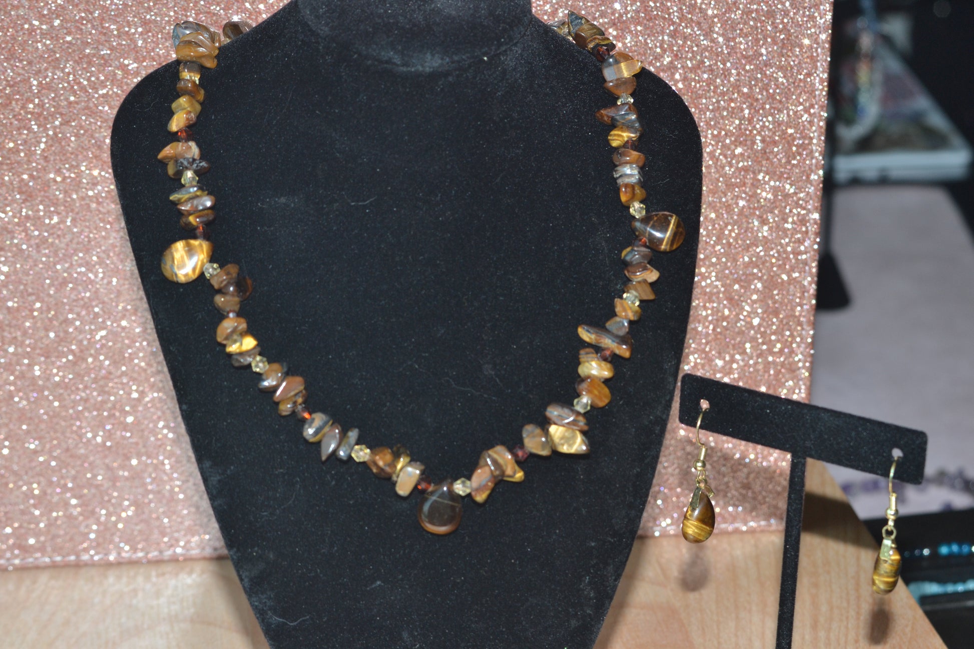 Tiger’s Eye Choker & Teardrop Earrings Set – Grounding & Confidence Jewelry
