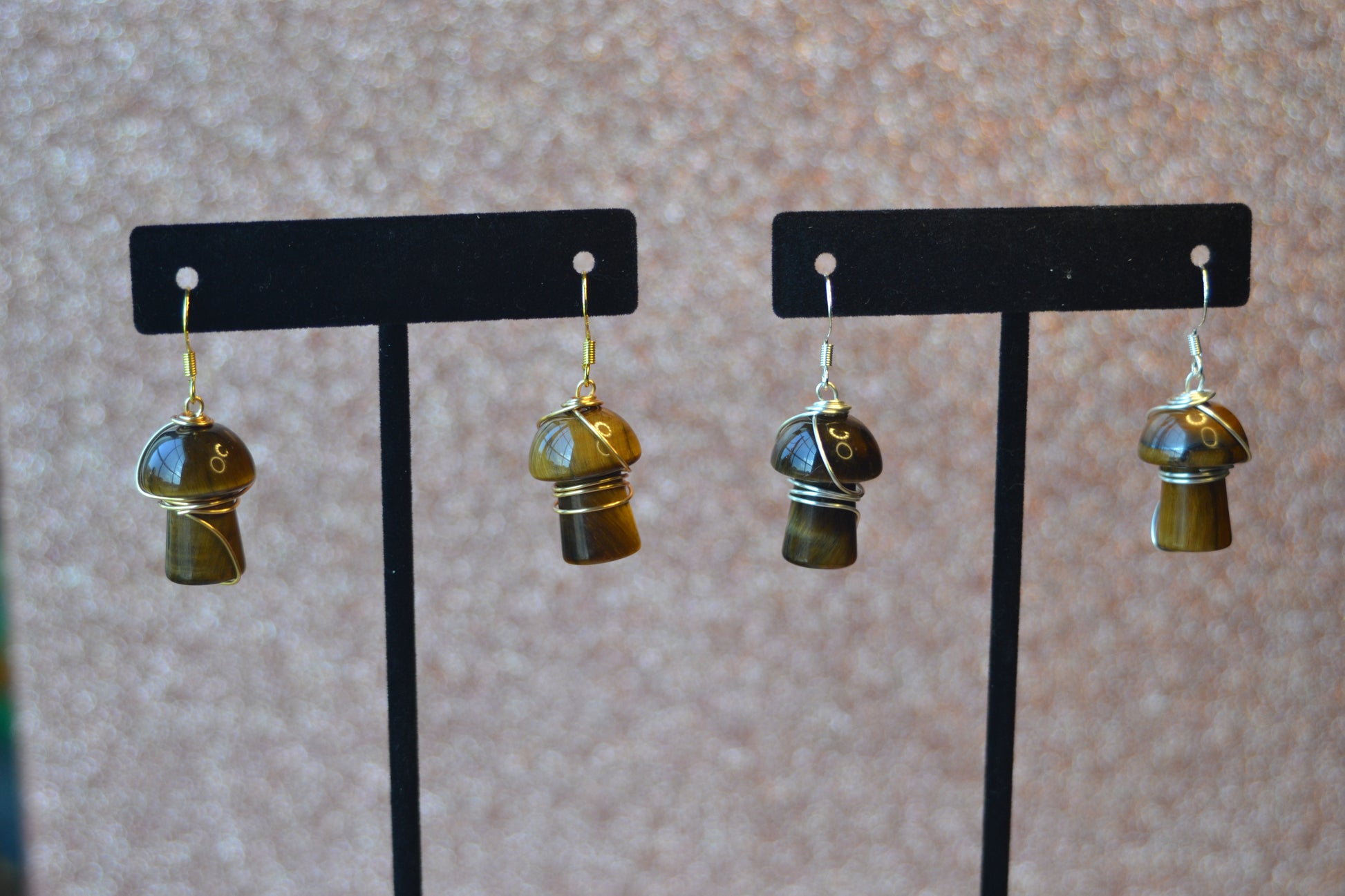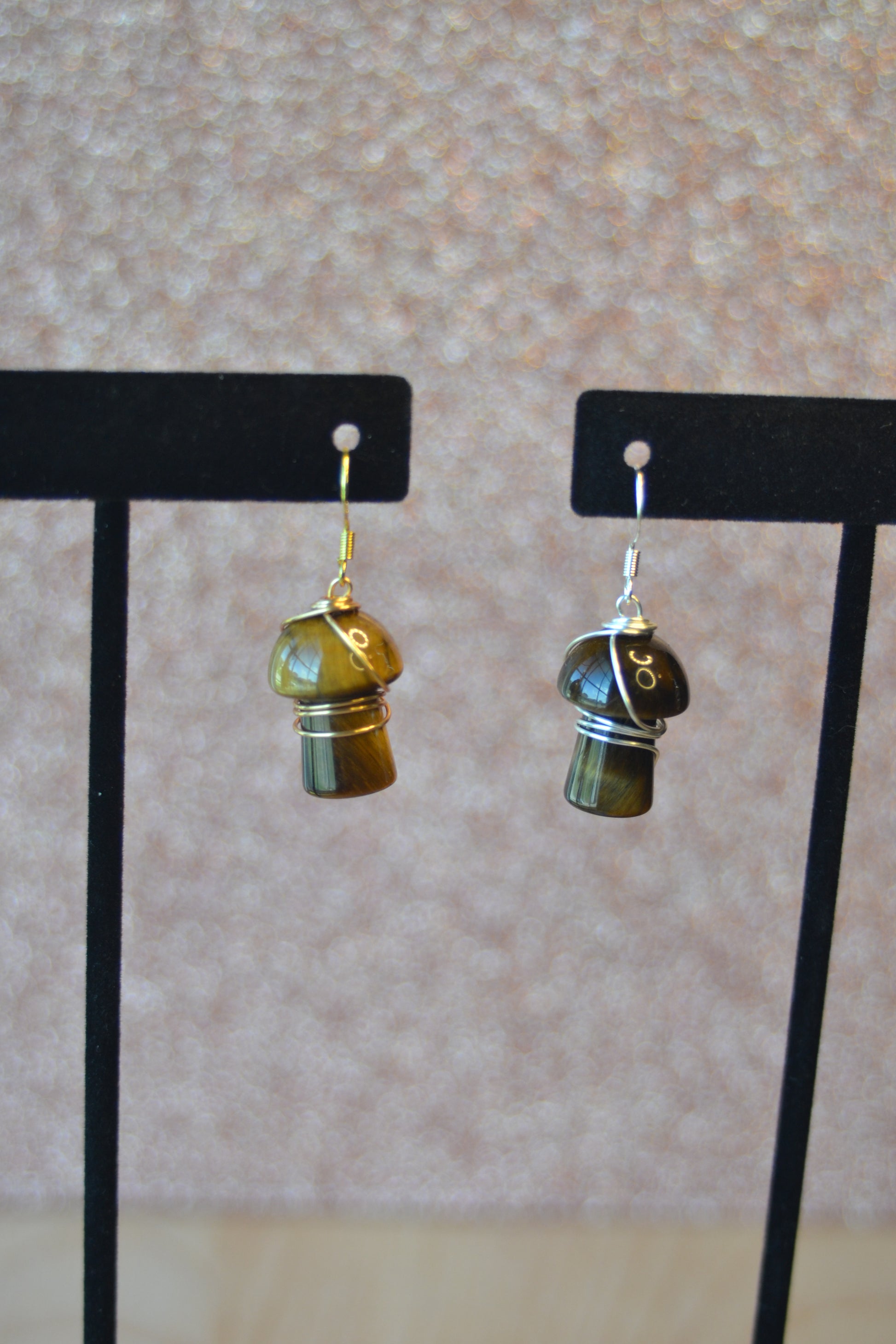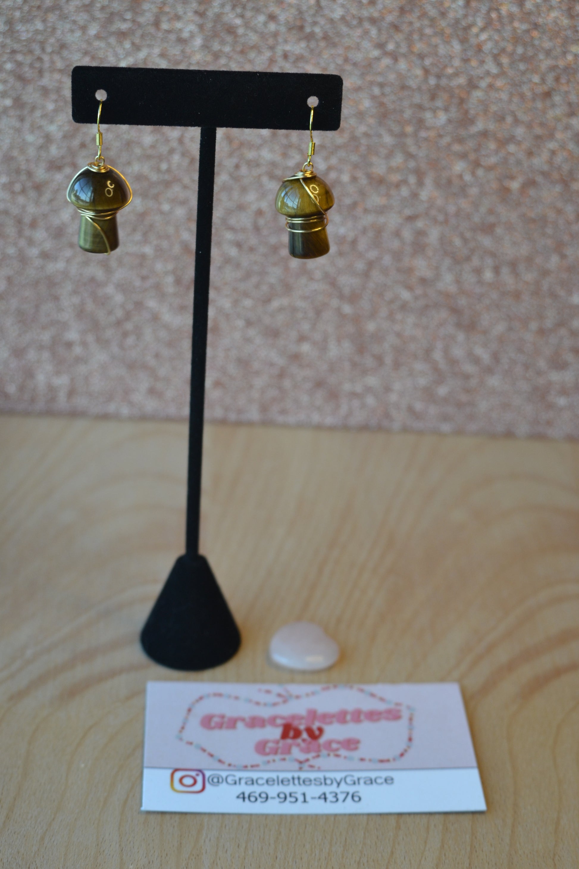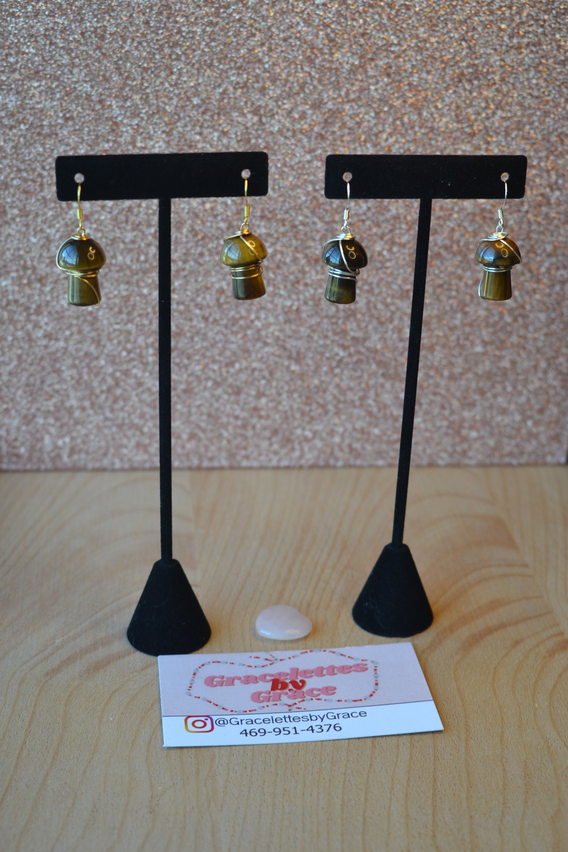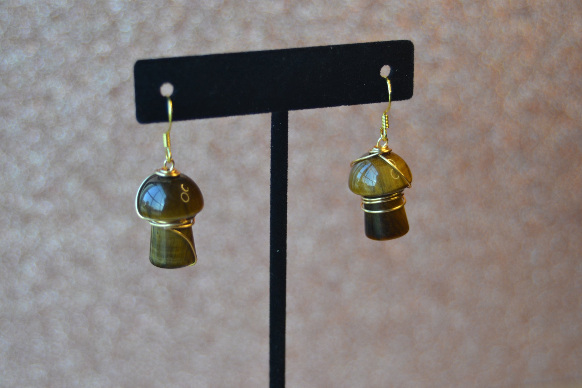 Tigers Eye Mushroom Earrings – Grounded Magic in Gold or Silver (1.5")