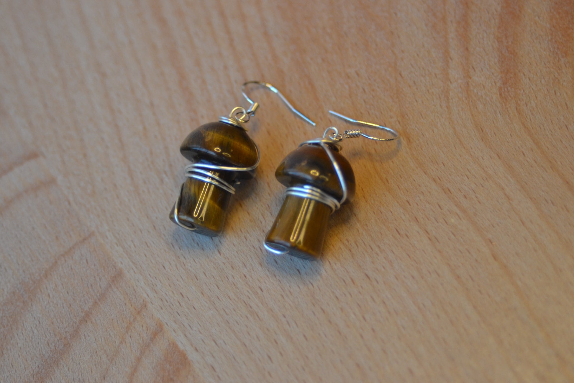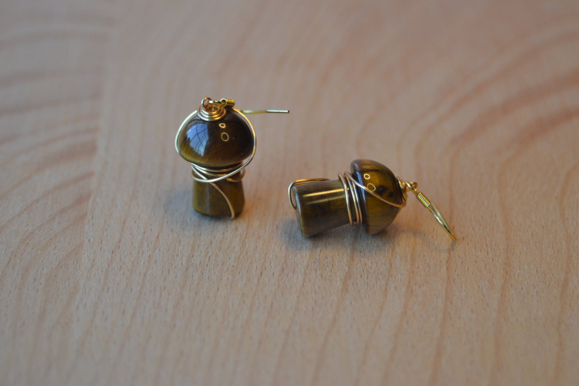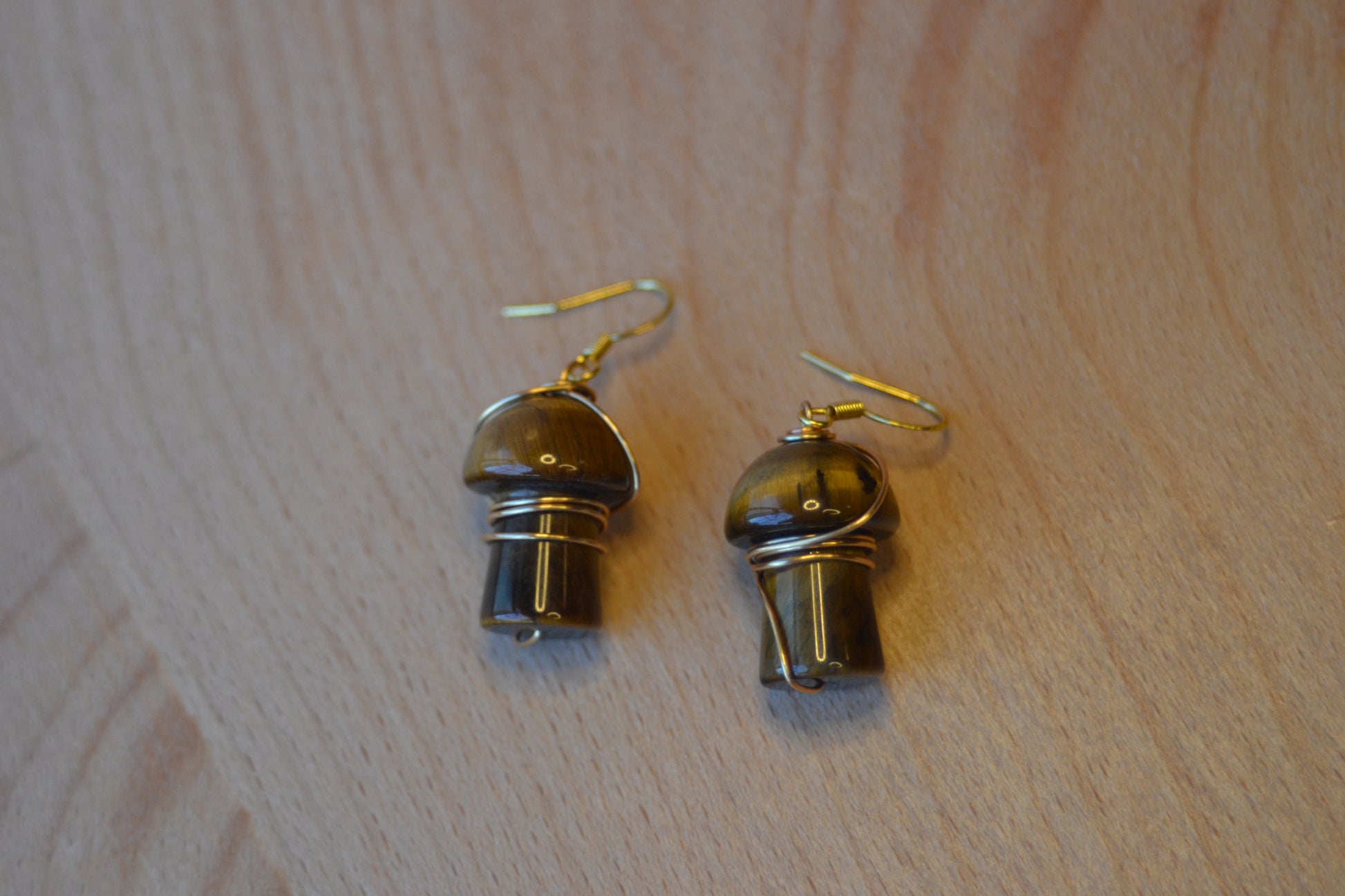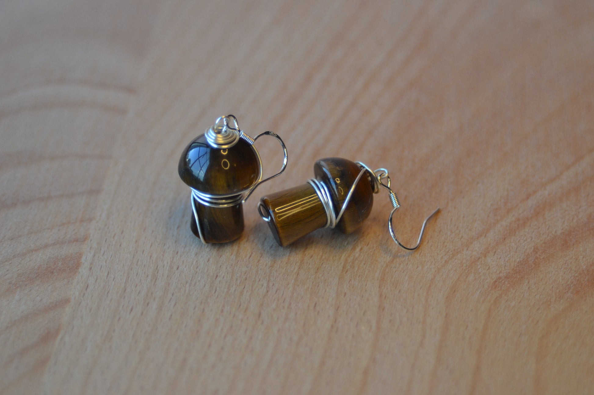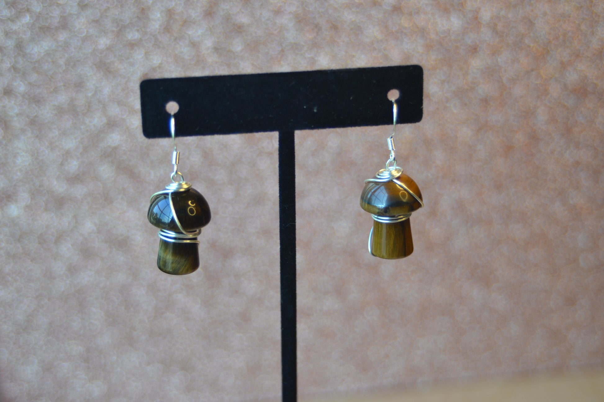 Tigers Eye Mushroom Earrings – Grounded Magic in Gold or Silver (1.5")