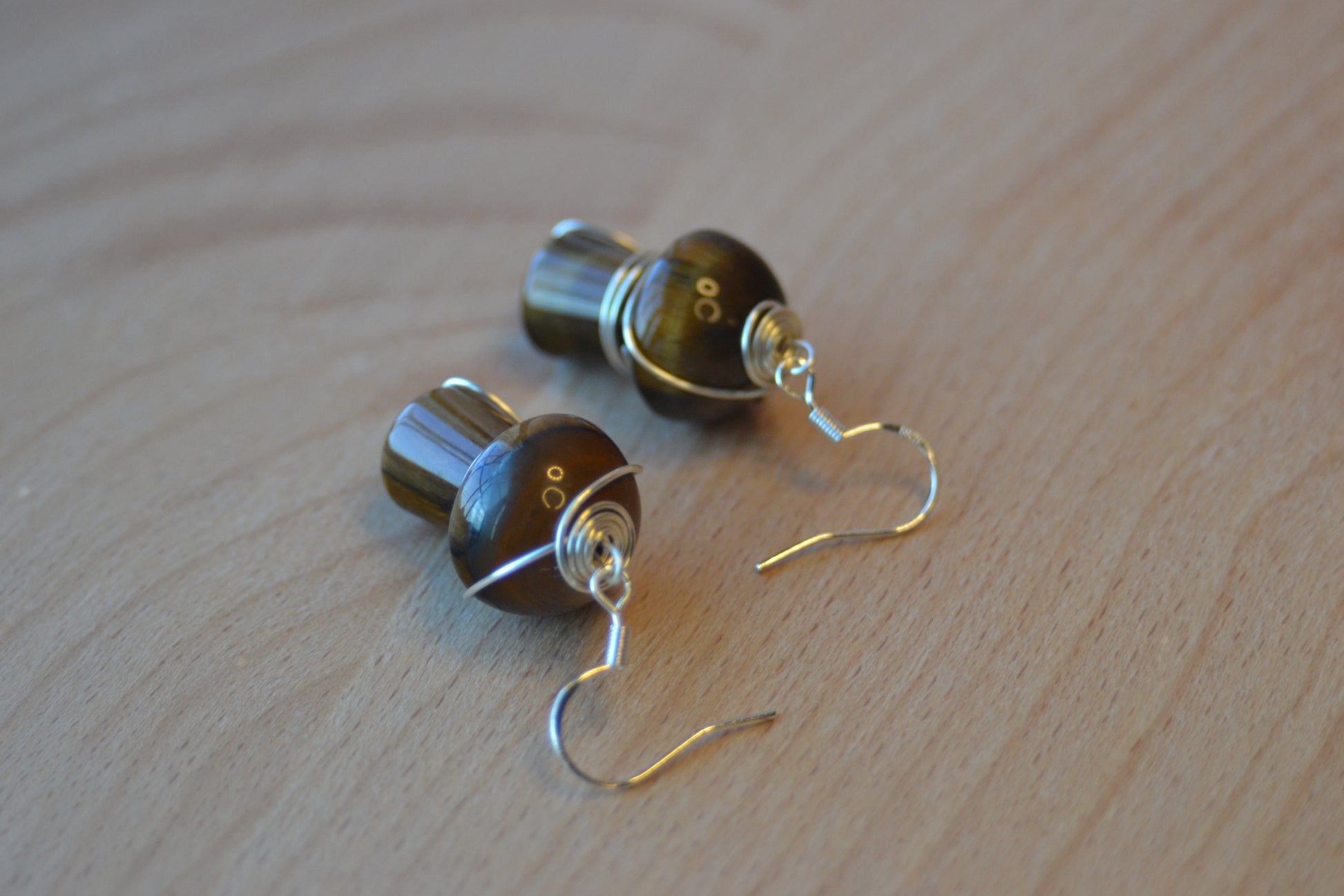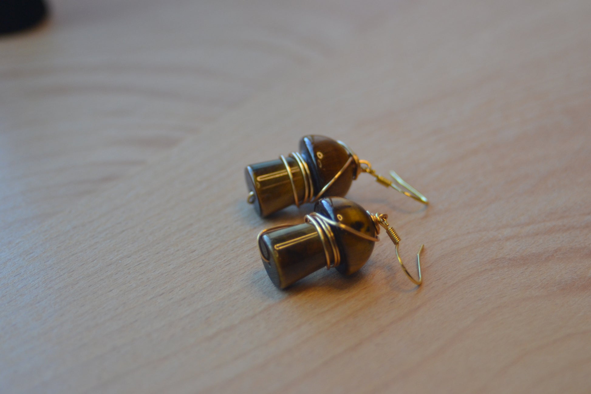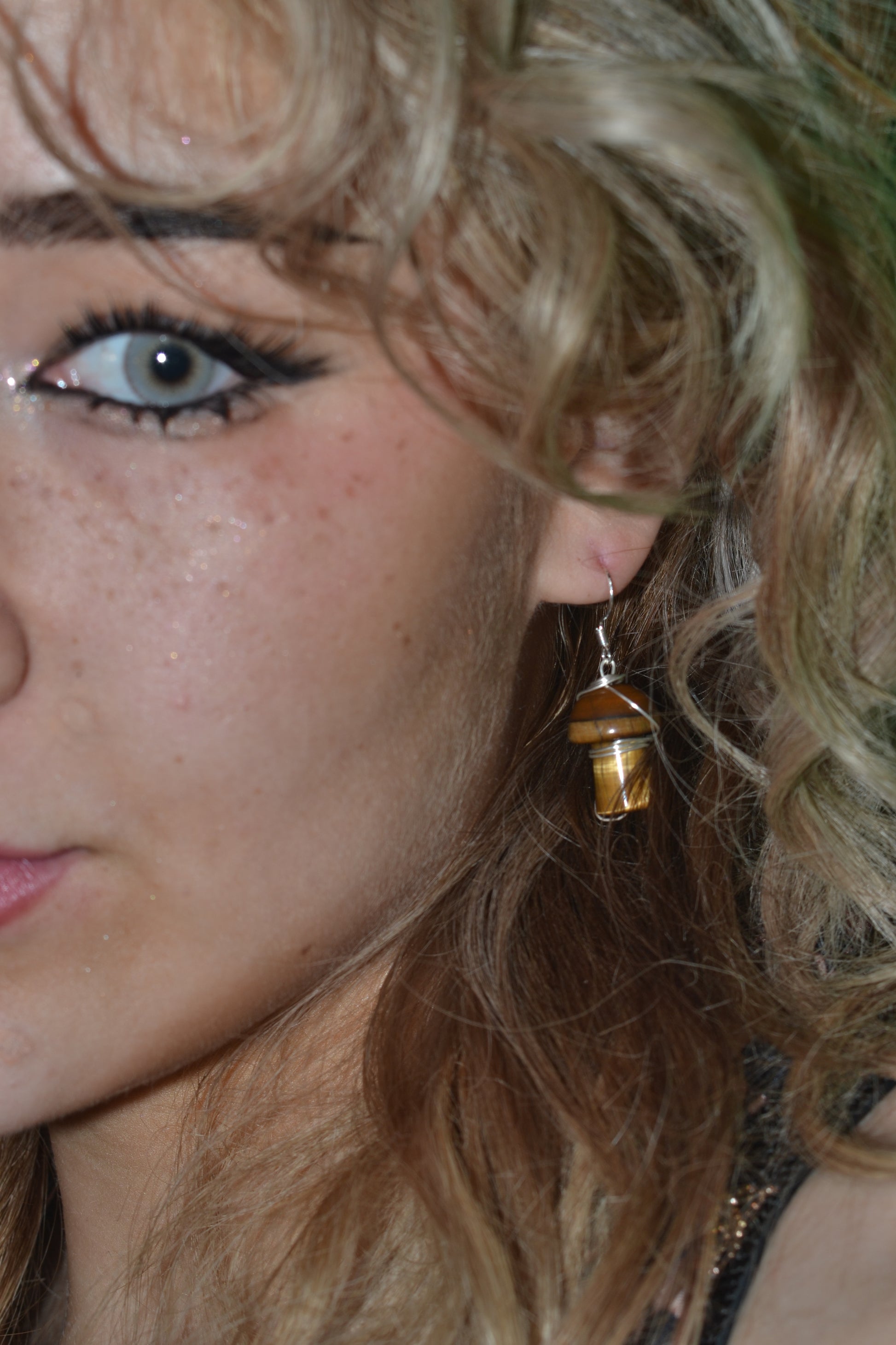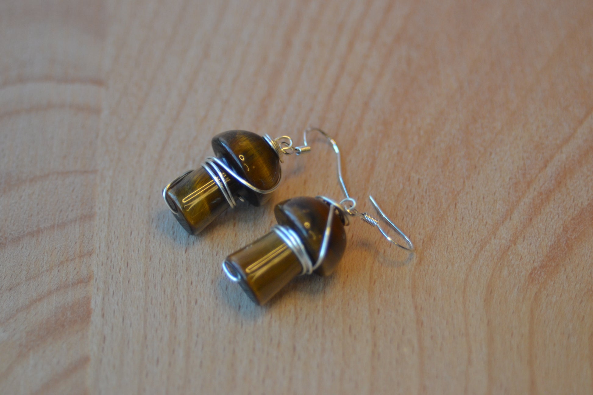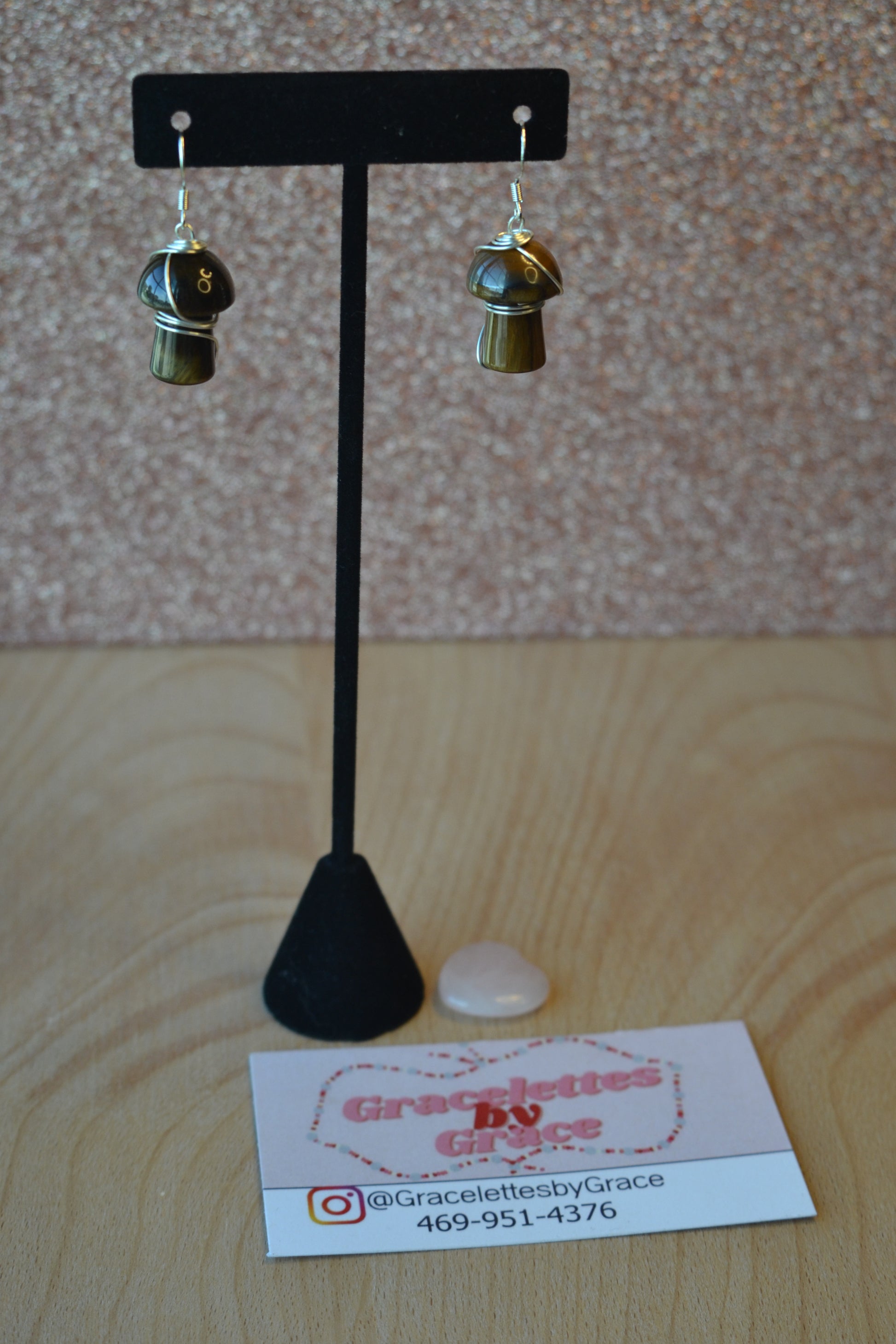 Tigers Eye Mushroom Earrings – Grounded Magic in Gold or Silver (1.5")