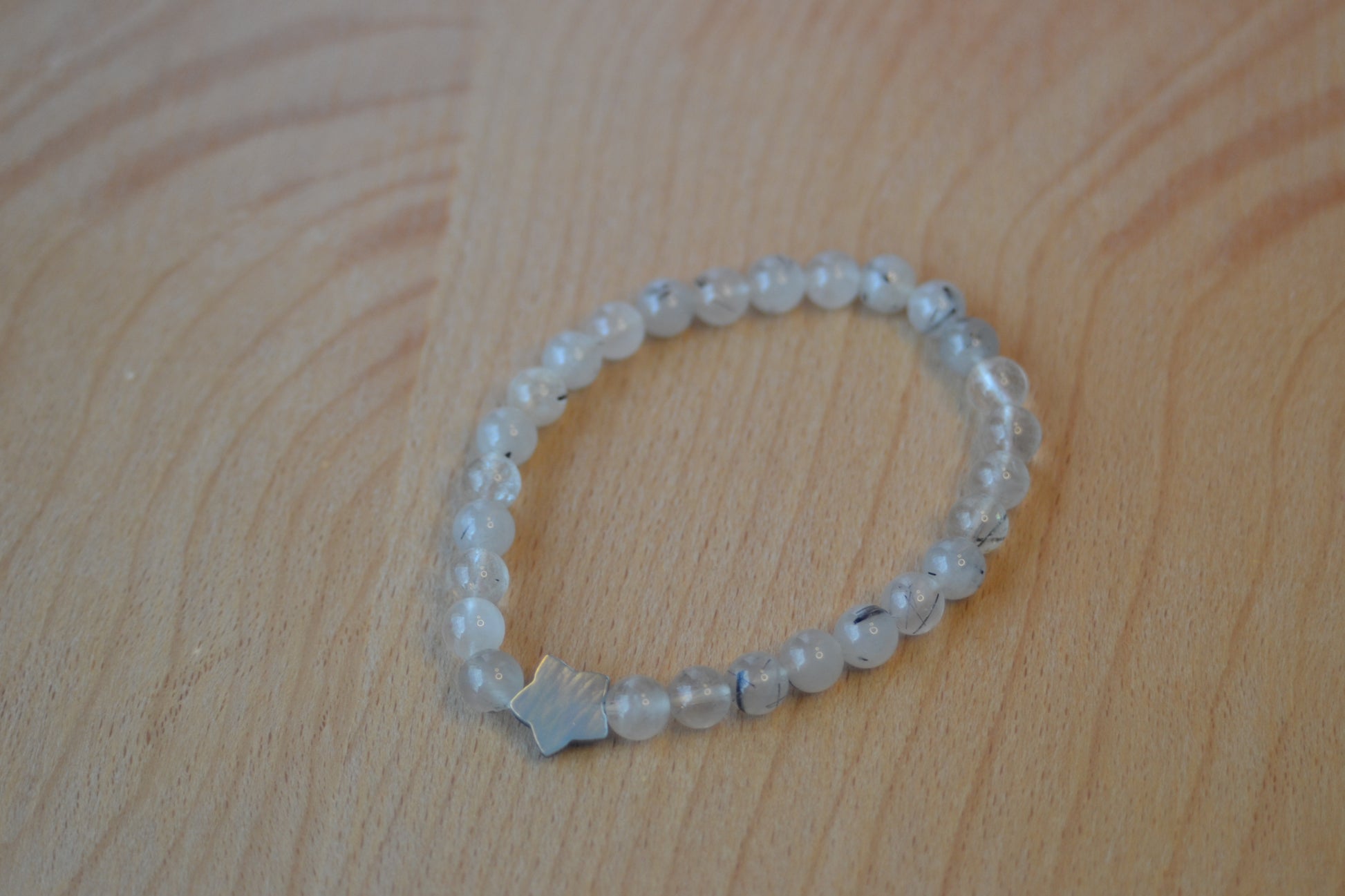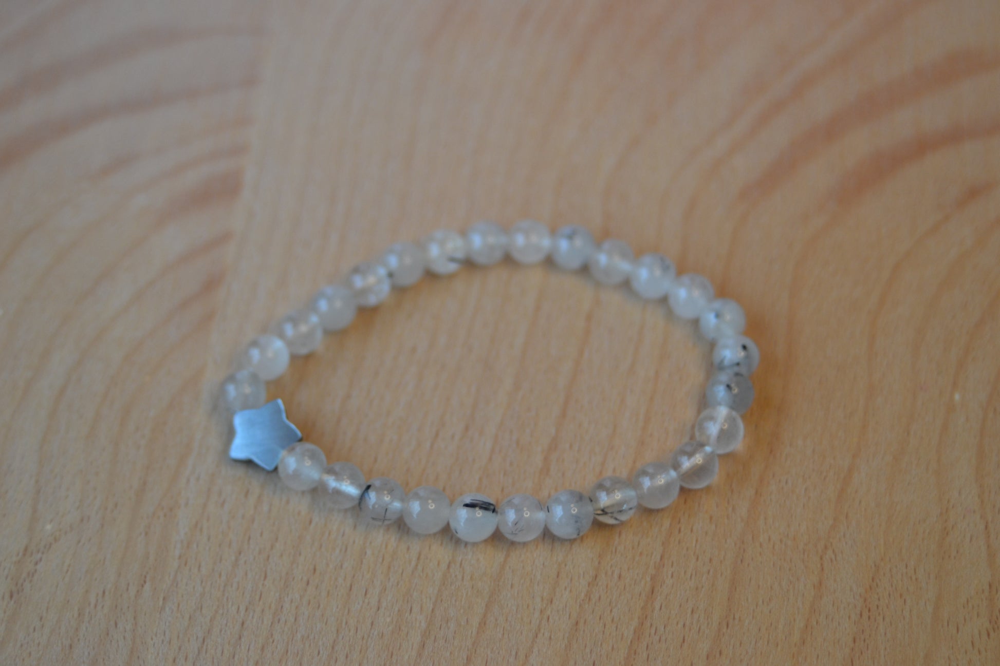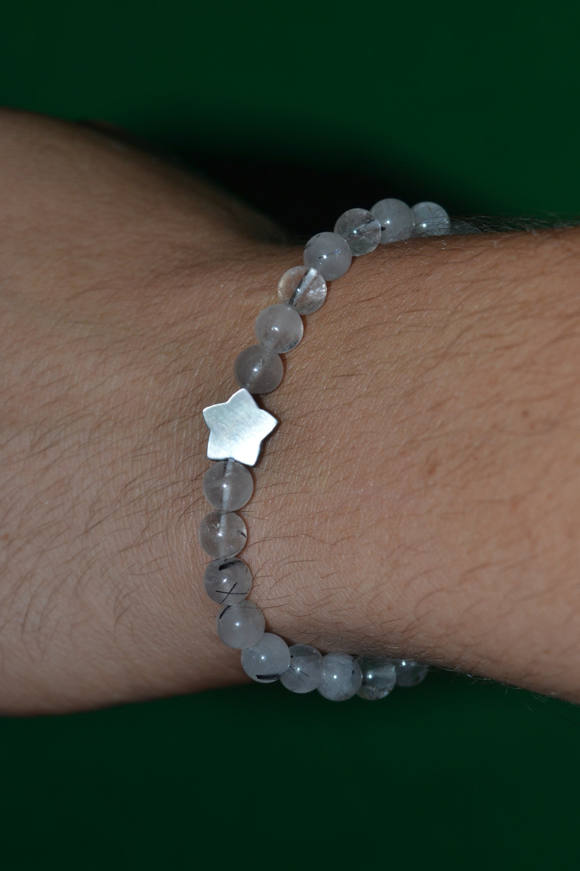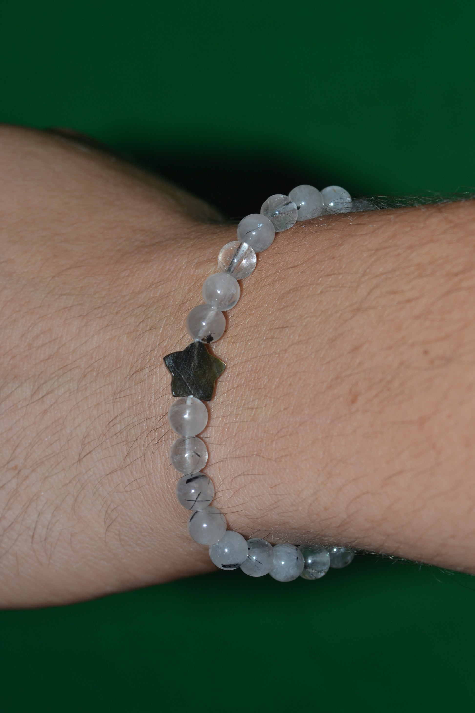 Tourmalated Quartz Bracelet with Mother of Pearl Star – Light & Shadow Balance