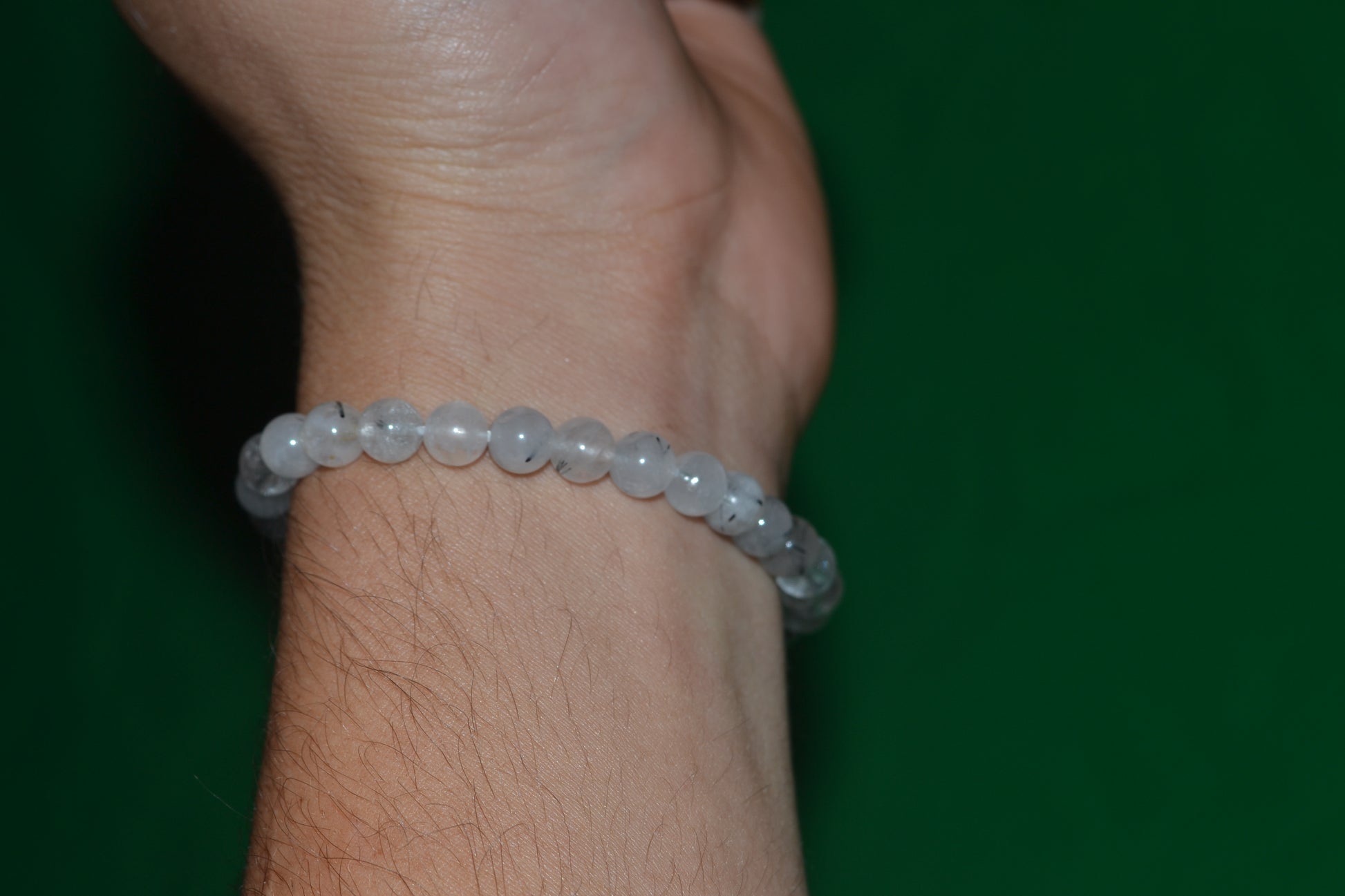 Tourmalated quartz combines the cleansing power of clear quartz with the grounding protection of black tourmaline, making this bracelet a potent talisman for balance and clarity. The mother of pearl star adds an ethereal touch, reminding you to embrace all aspects of yourself.