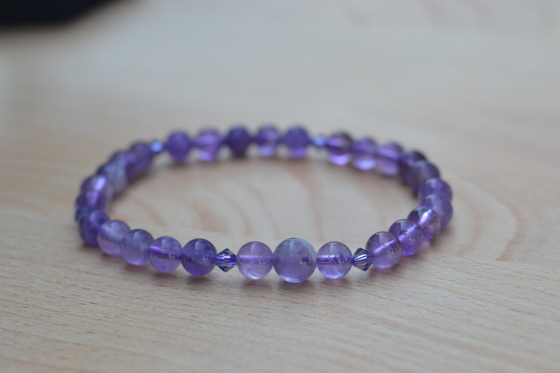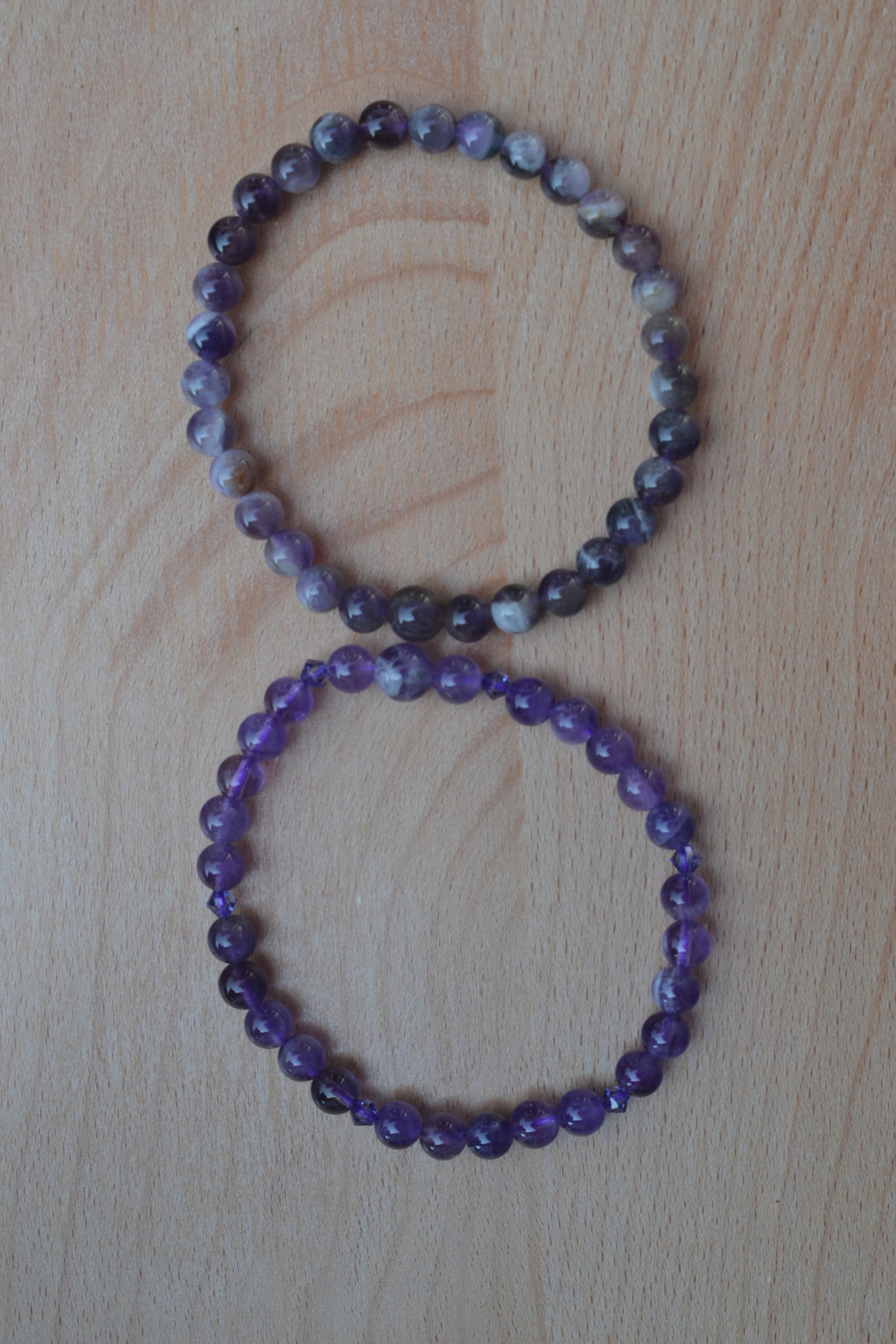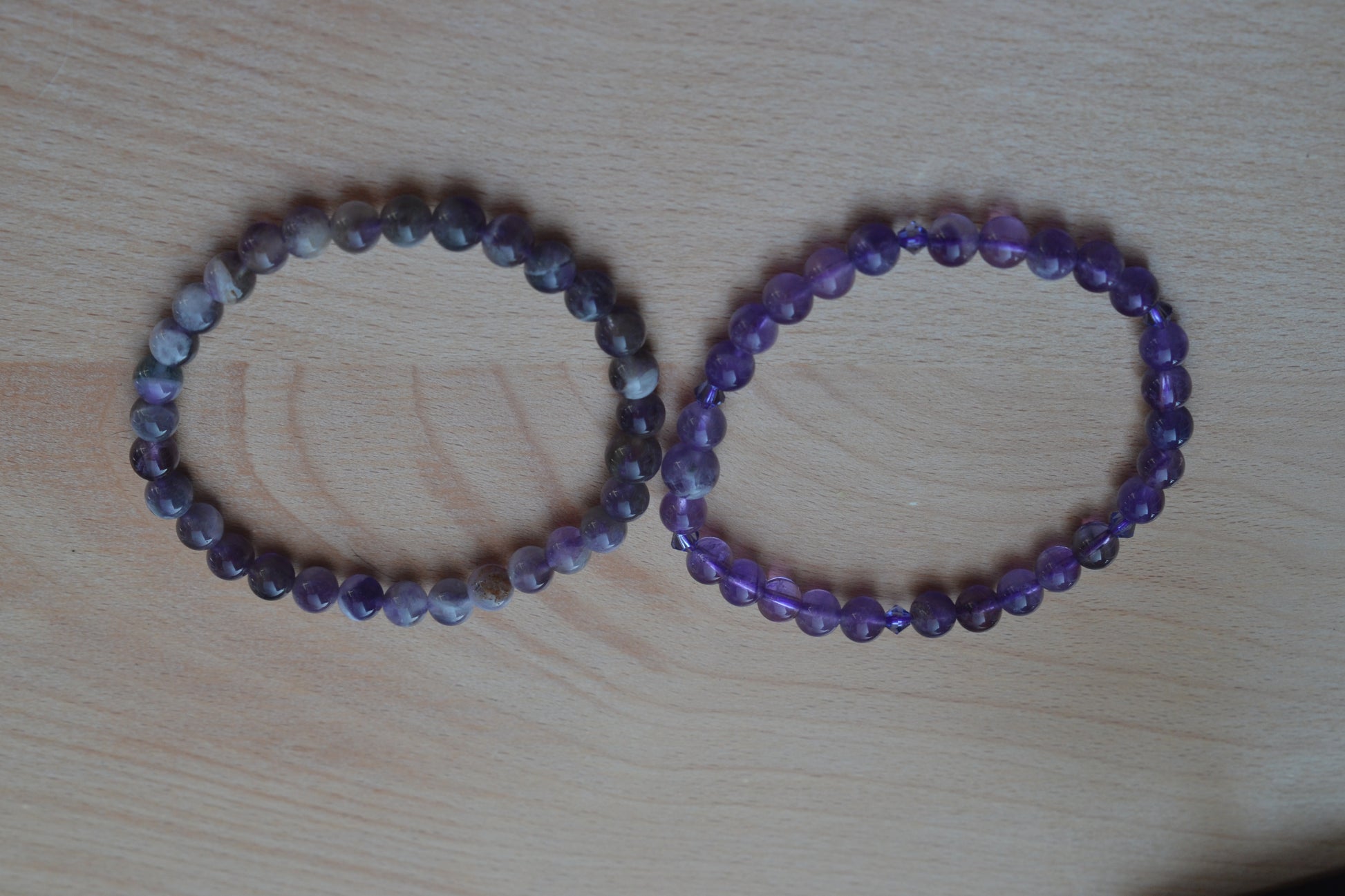 Celebrate connection and shared energy with this Amethyst couples bracelet set. Both bracelets are made with 6mm Amethyst beads and feature a single 8mm center bead as a focal point.