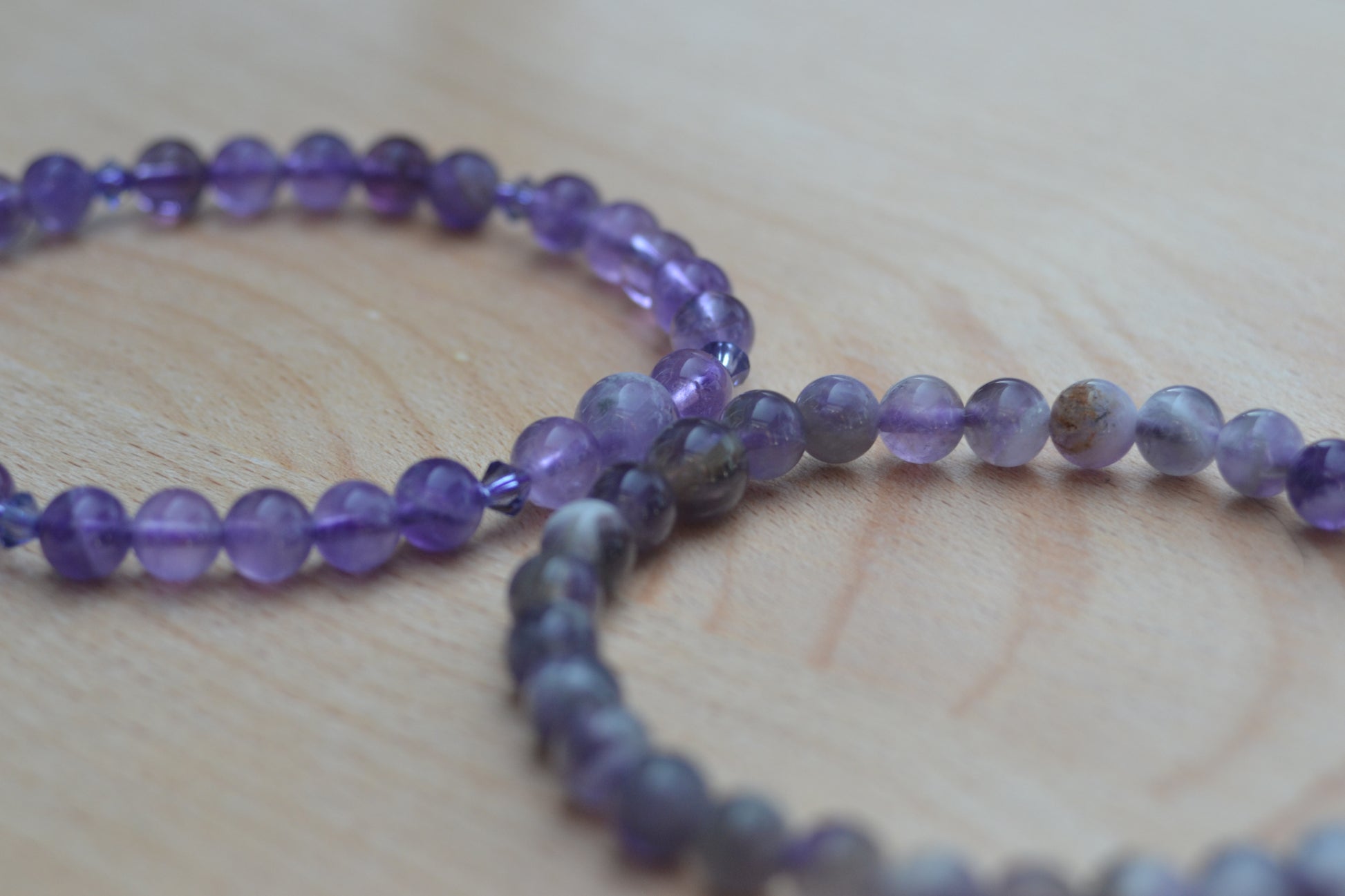 Amethyst → Calm, intuition, spiritual protection, clarity.
