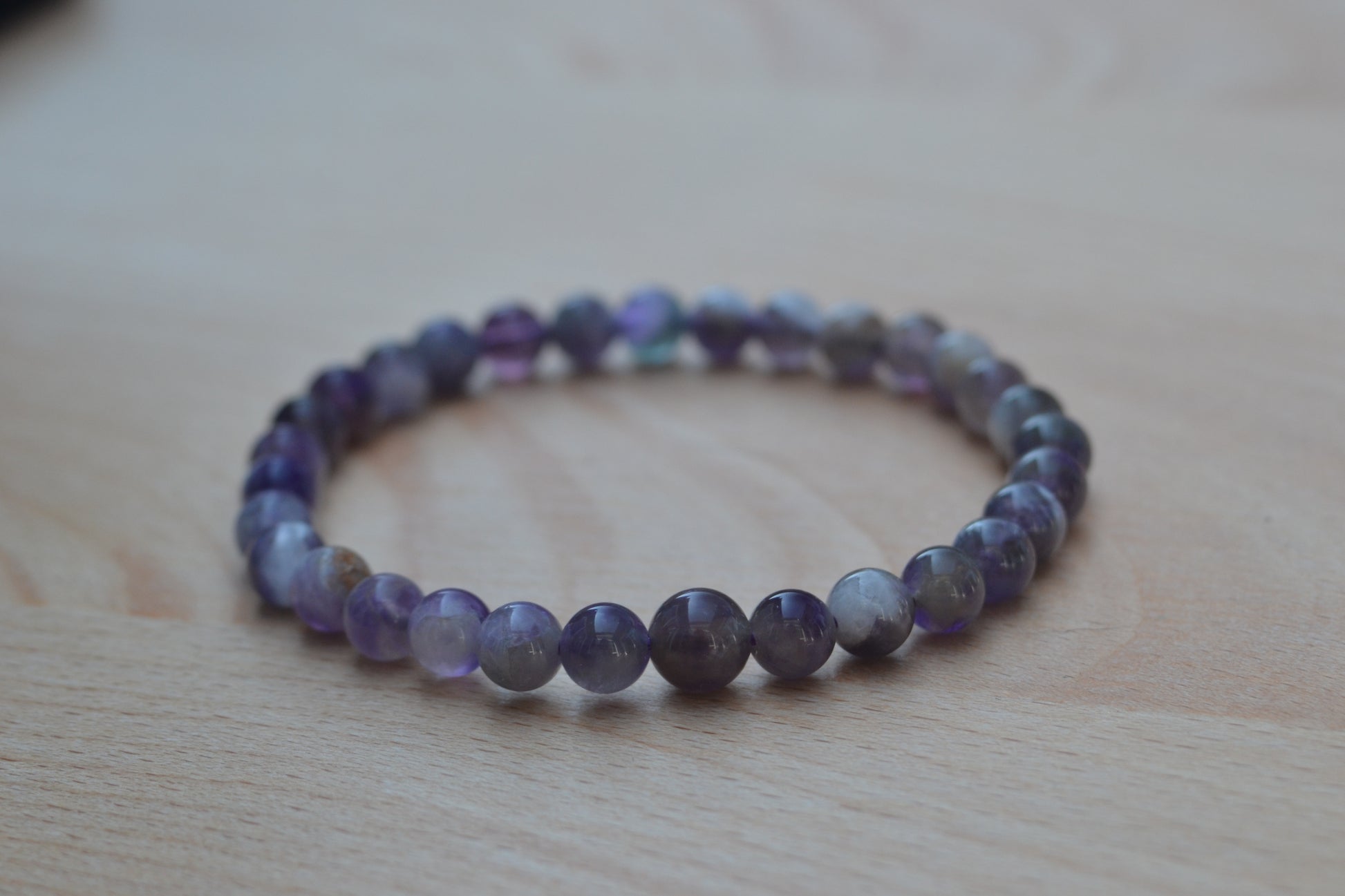The feminine bracelet is a deep purple with sparkling purple faceted crystal spacers, creating an elegant and vibrant look. The masculine bracelet is crafted with grey Amethyst beads, offering a subtle and grounded aesthetic. Both bracelets are strung on durable elastic for a comfortable fit, making them perfect for couples who want a meaningful, wearable symbol of their bond.