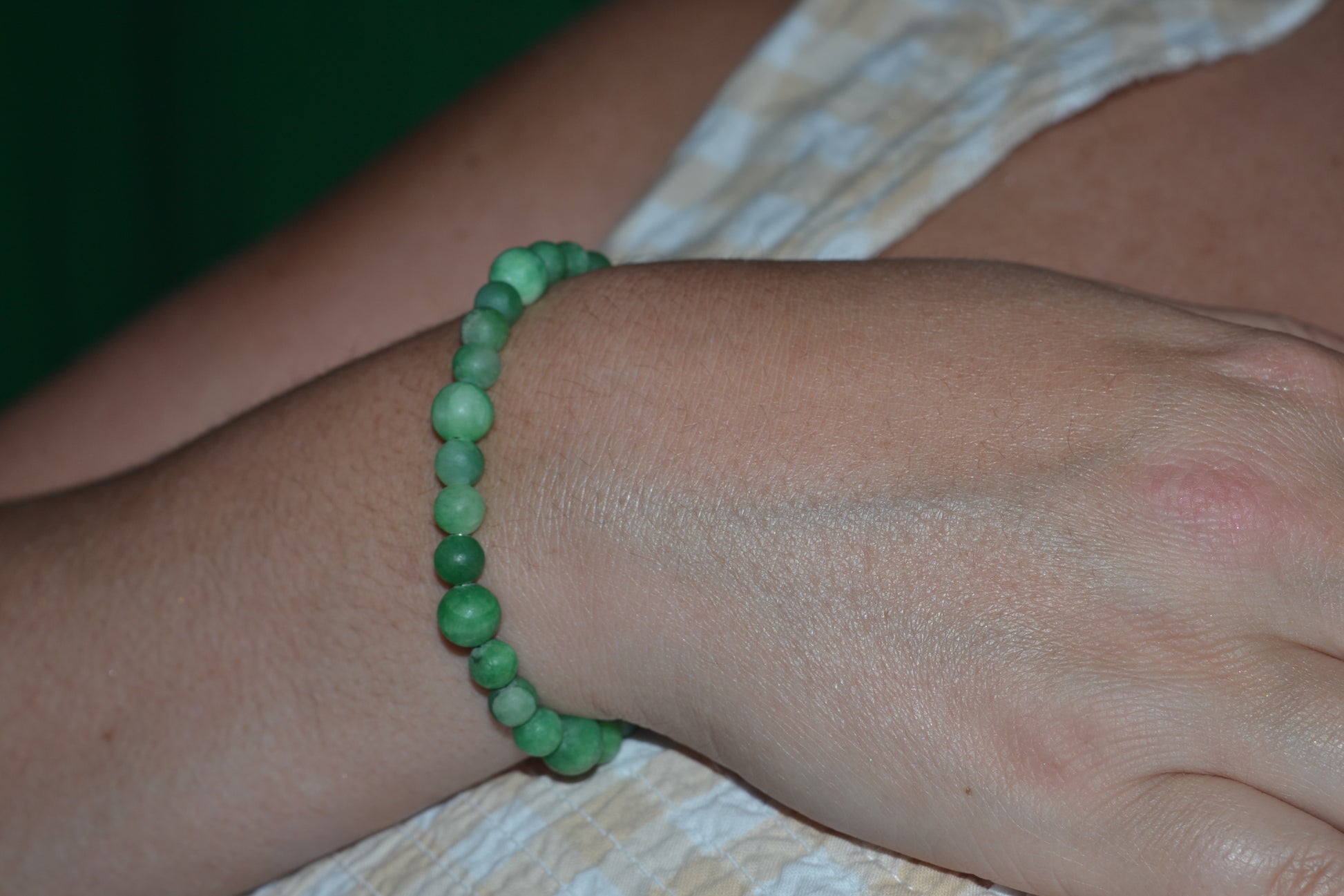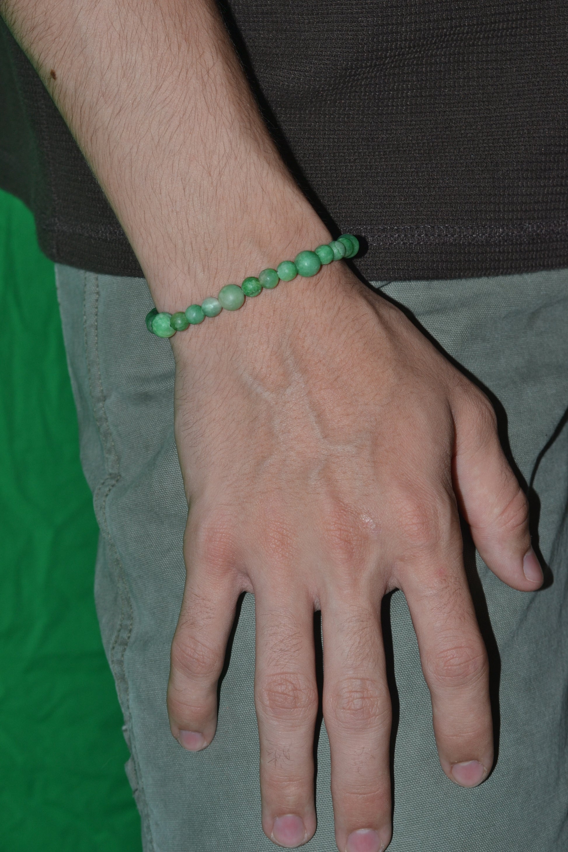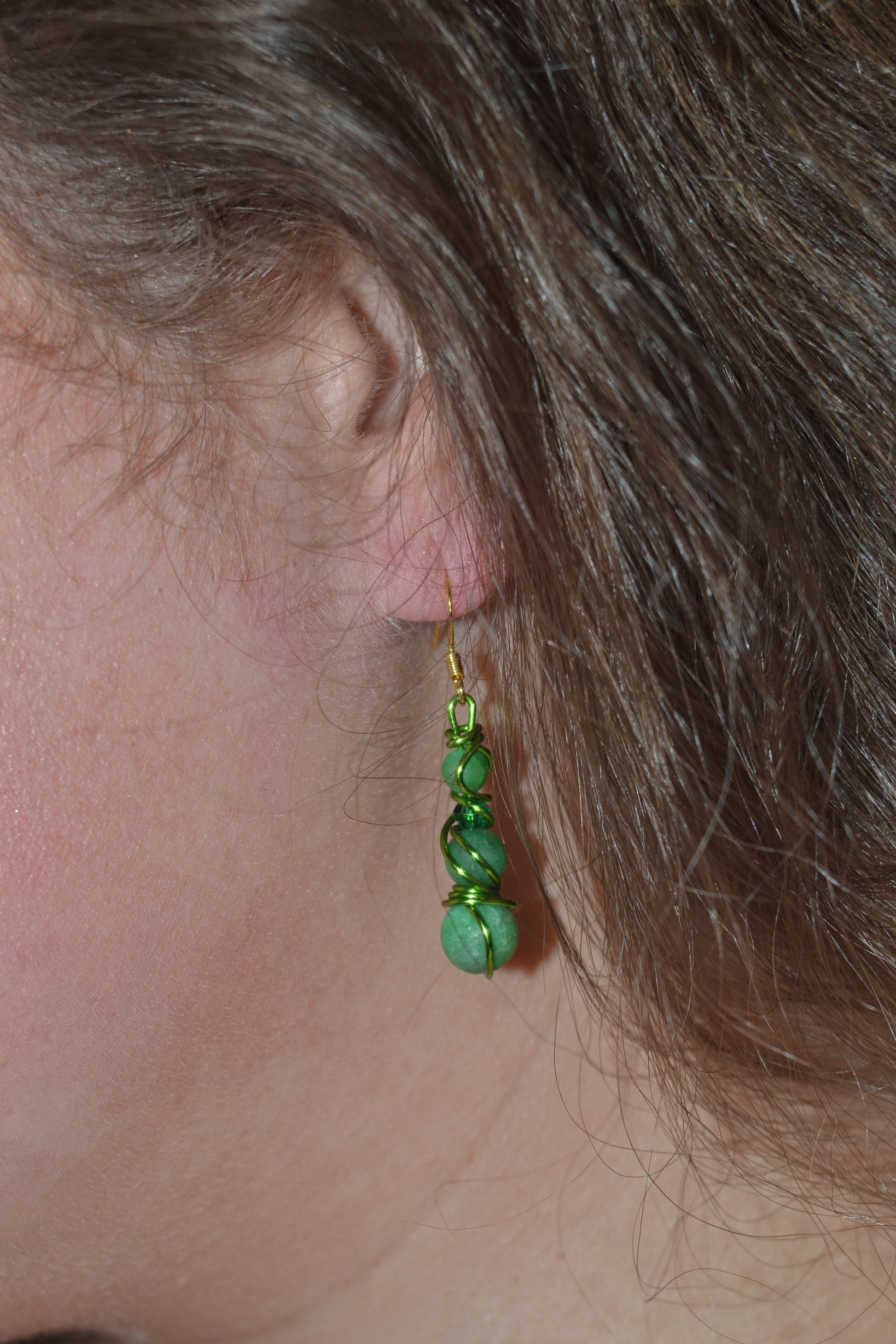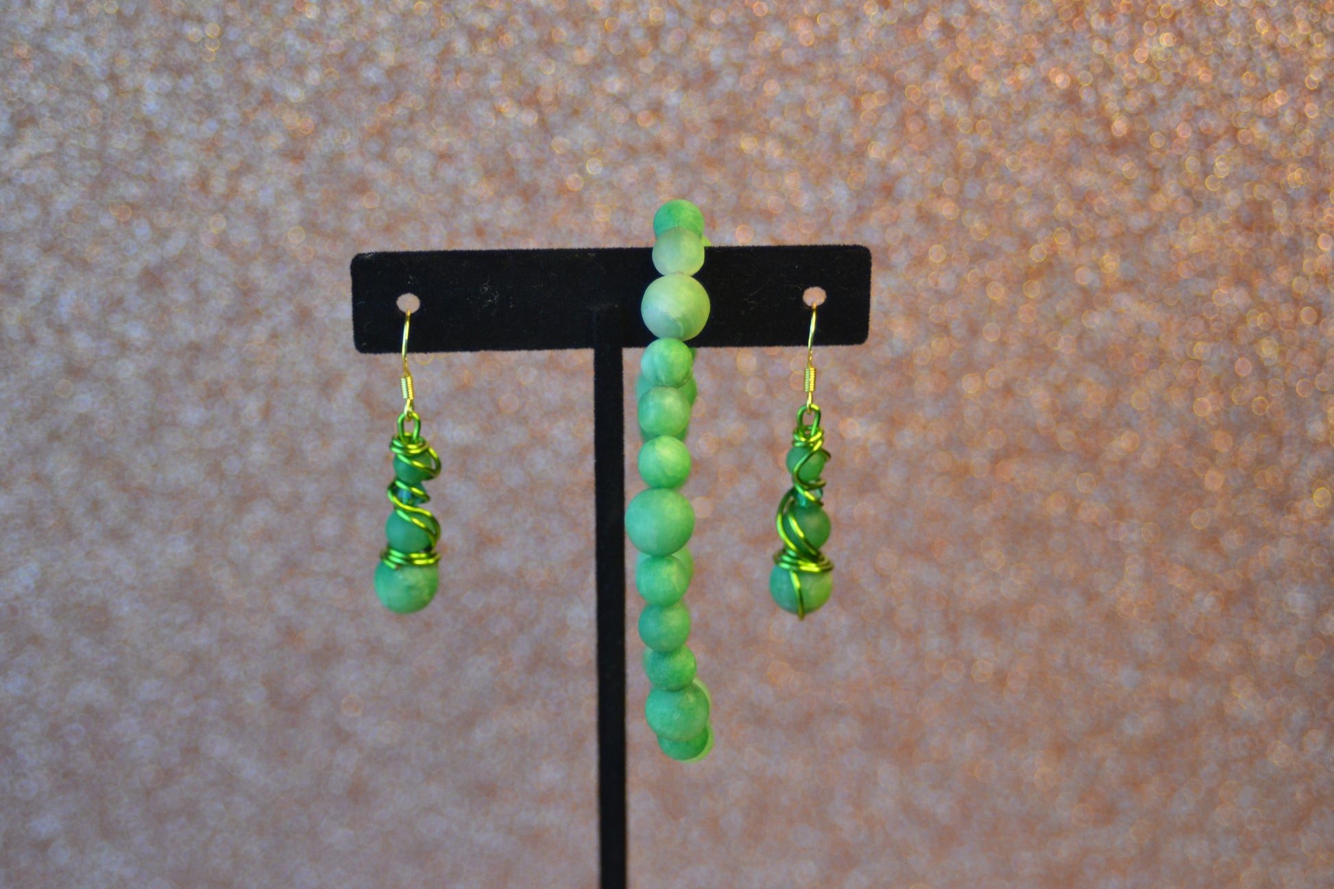 Materials: Unpolished jade (4mm & 6mm), green wire wrap