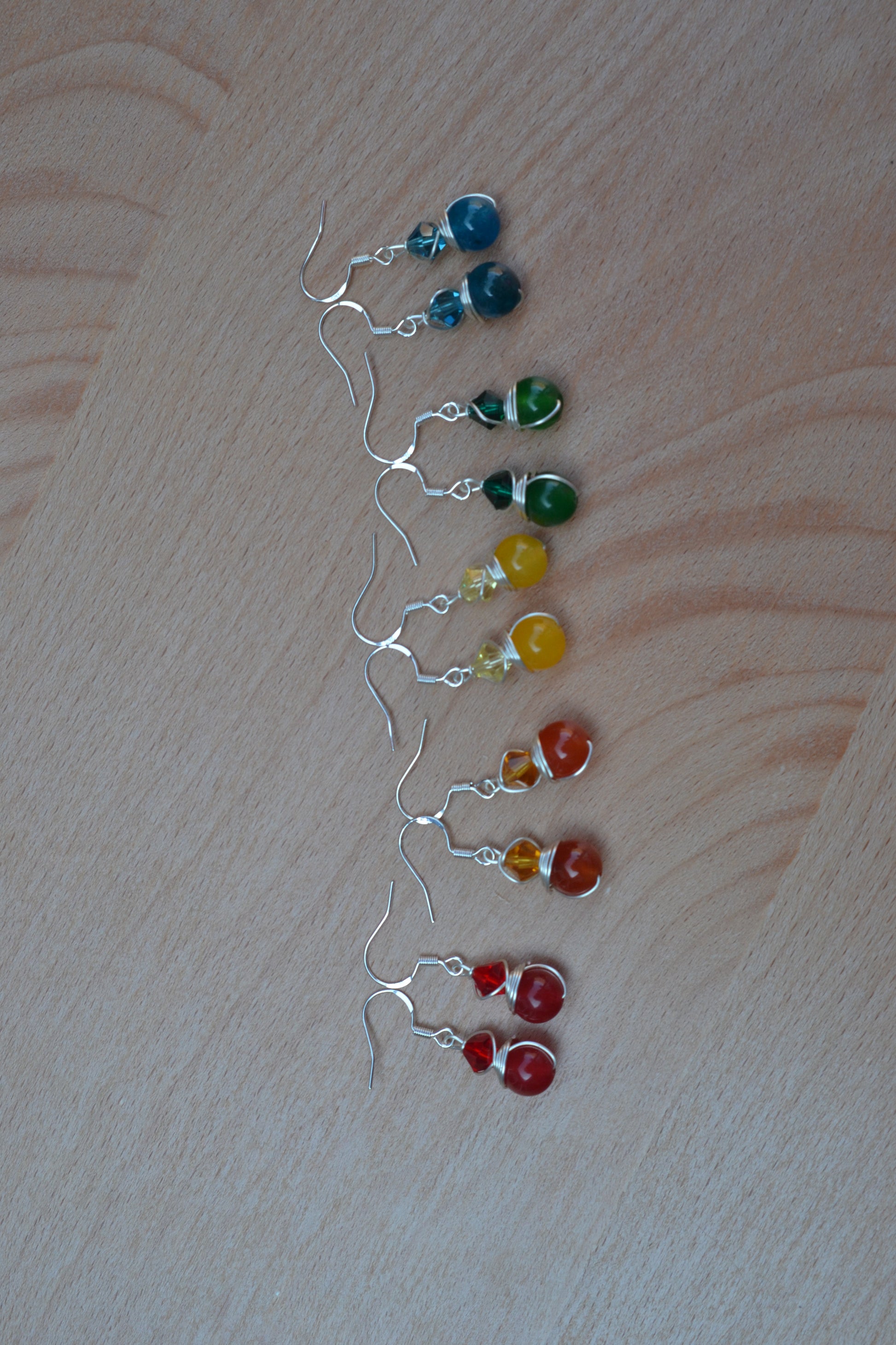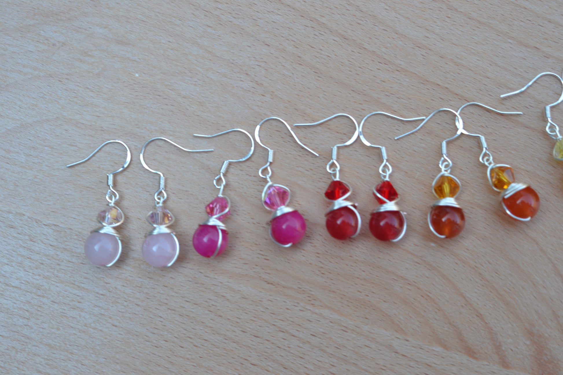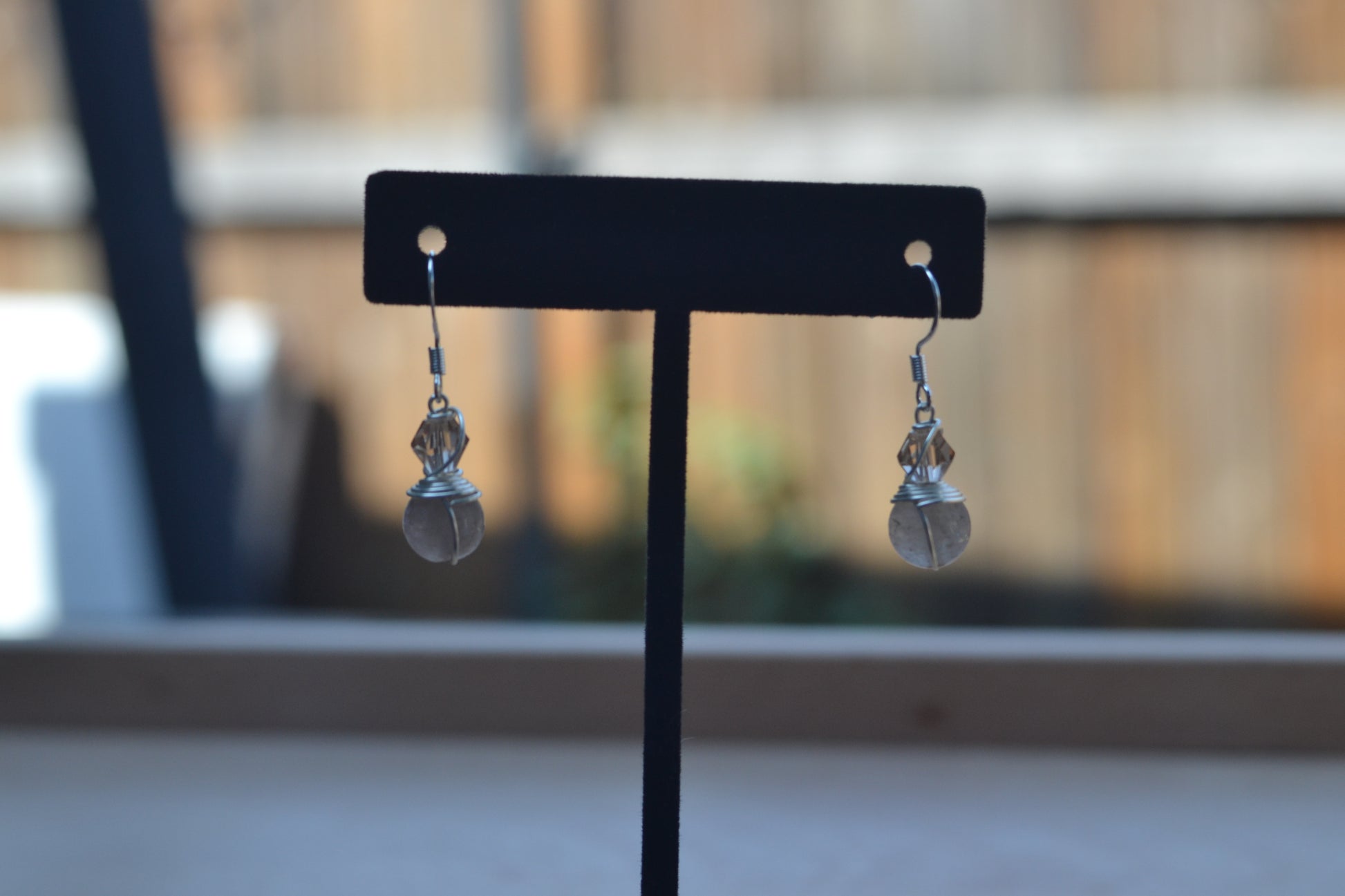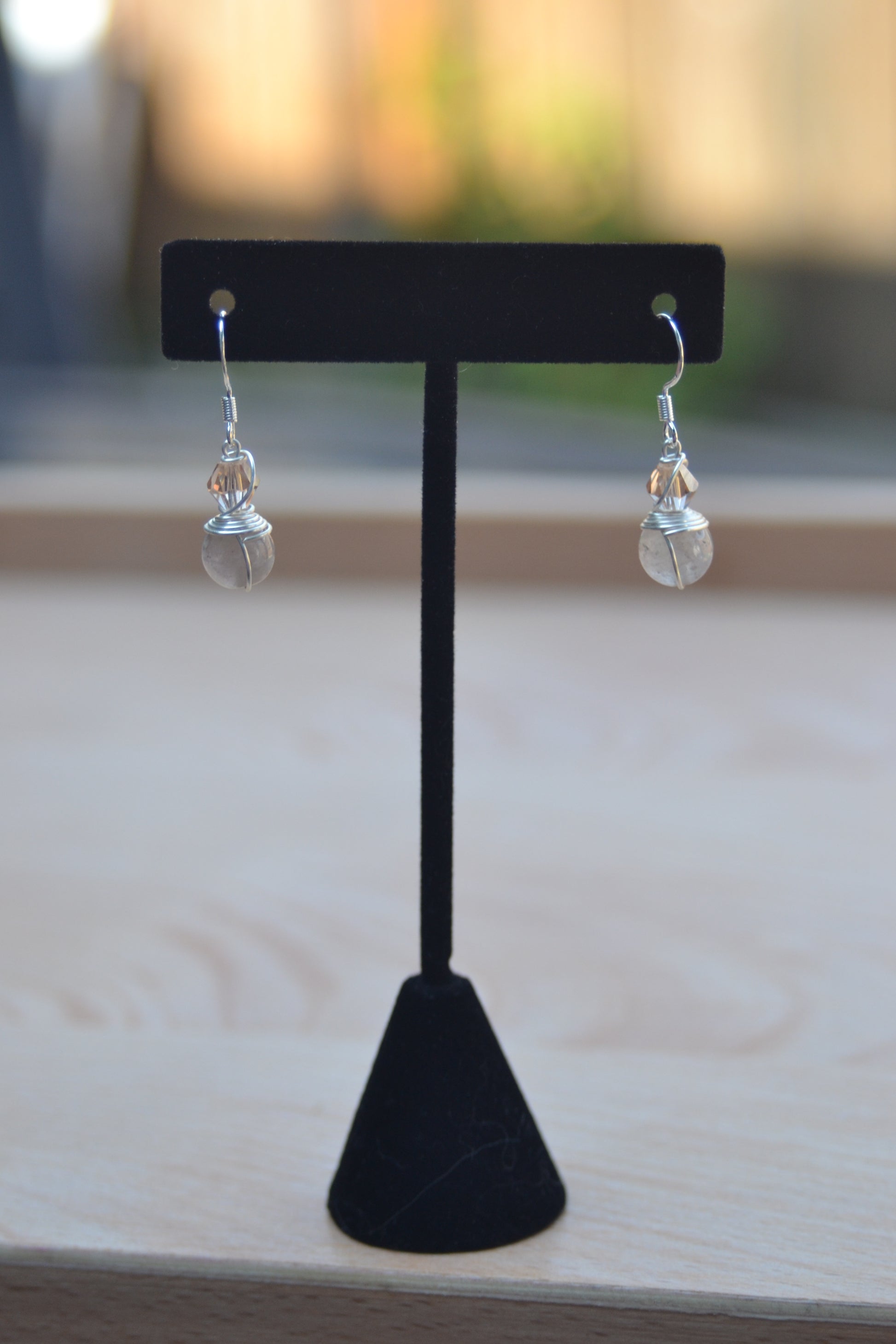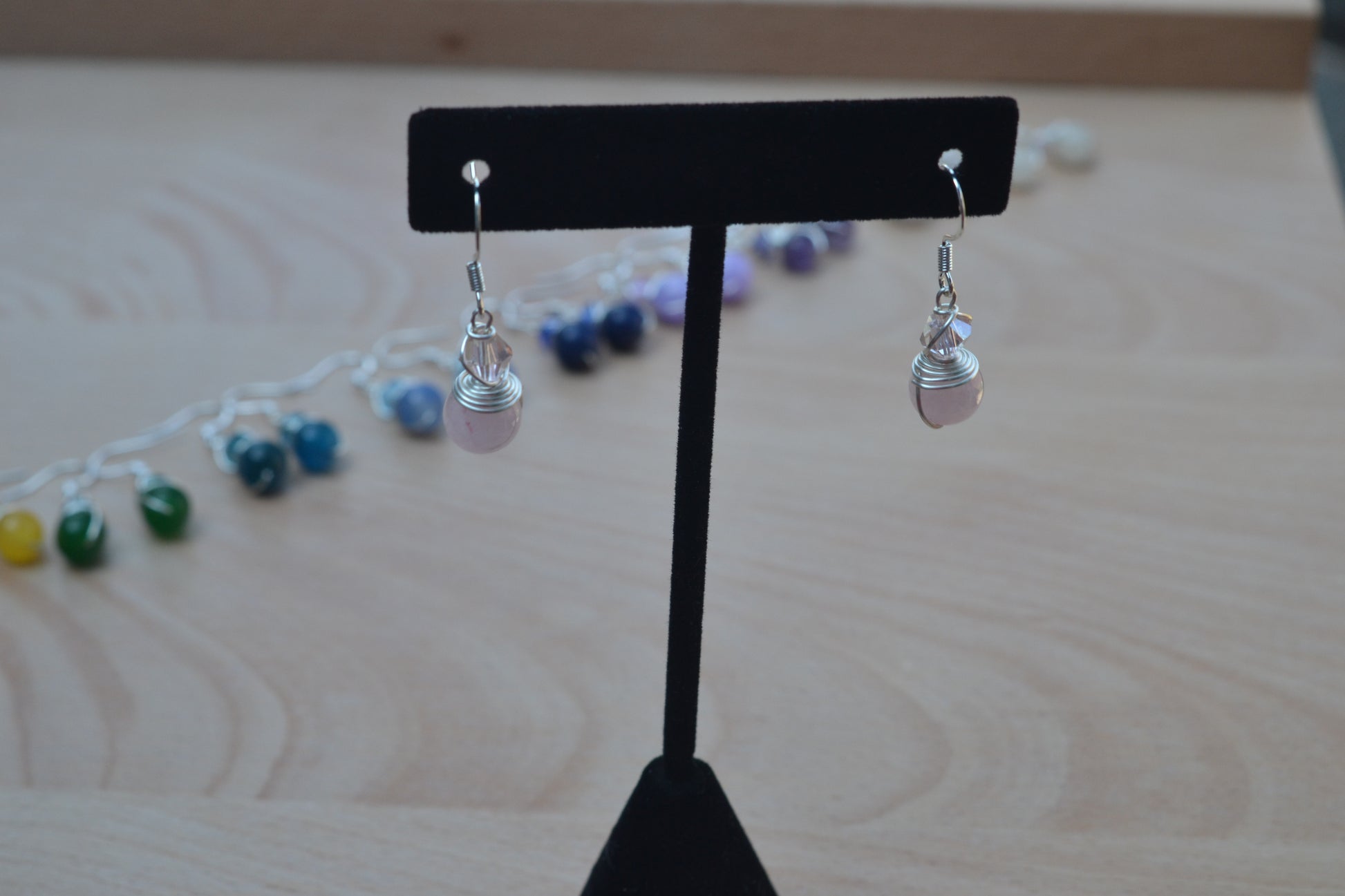Thirteen pairs, one timeless design — each uniquely brought to life with vibrant crystals. The Spectrum Collection captures the full arc of color and energy, from grounding smoky quartz to radiant moonstone. Every pair features 8mm natural stones, wire-wrapped in silver-plated copper with sterling silver hooks, finished with a faceted crystal accent for extra shimmer. Whether you wear your birthstone, your favorite color, or choose by energy, these earrings are designed to bring balance, beauty, and intention to your everyday look.