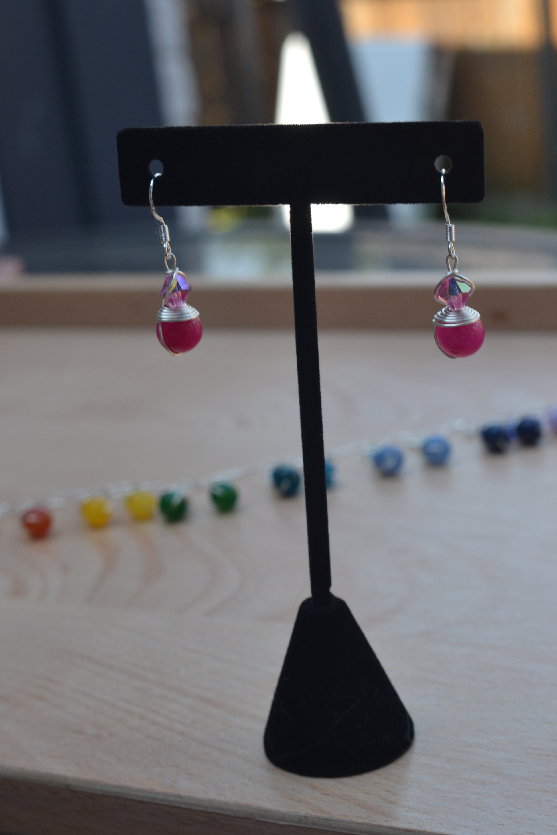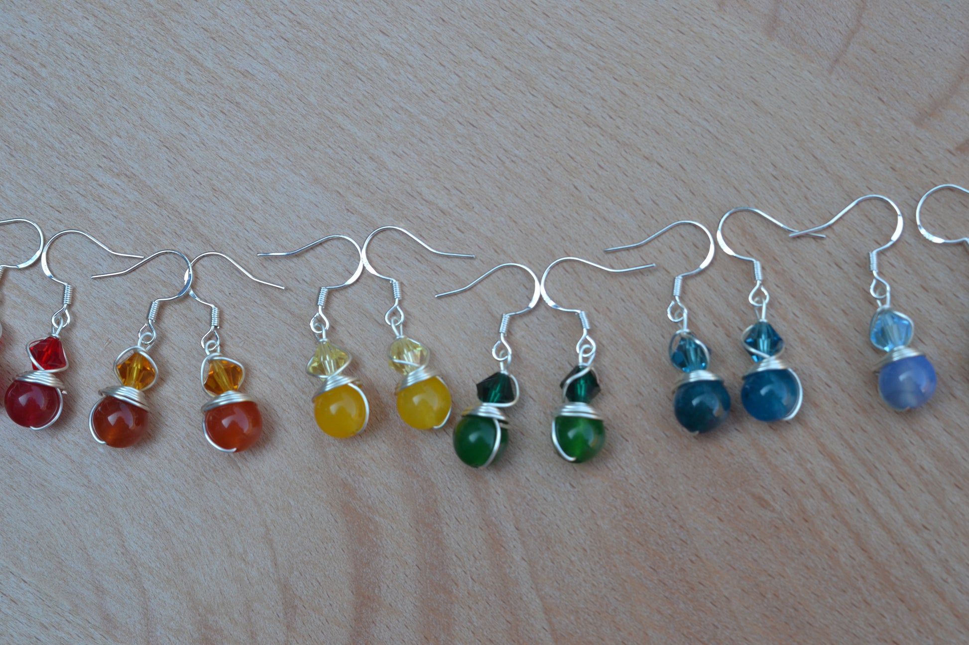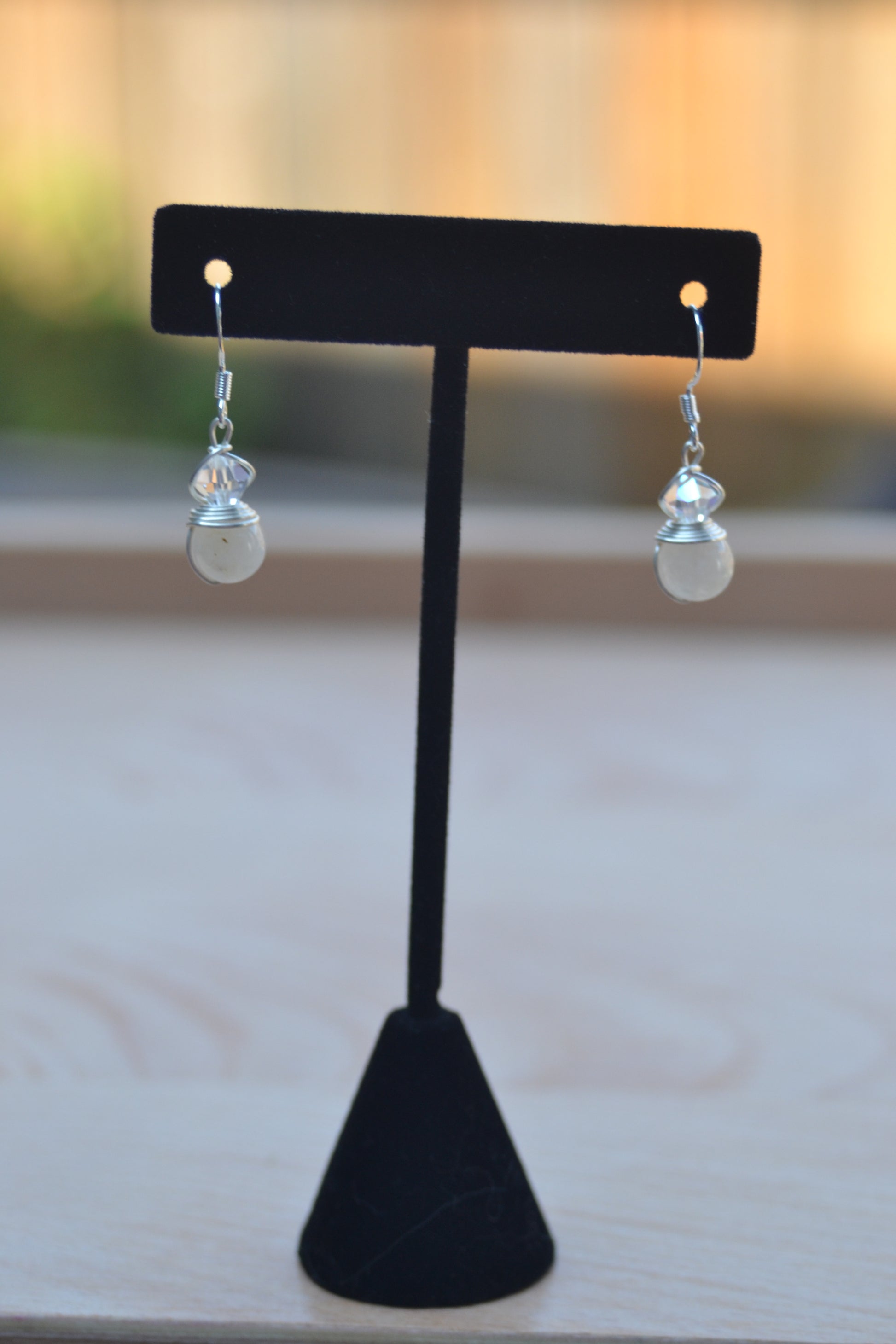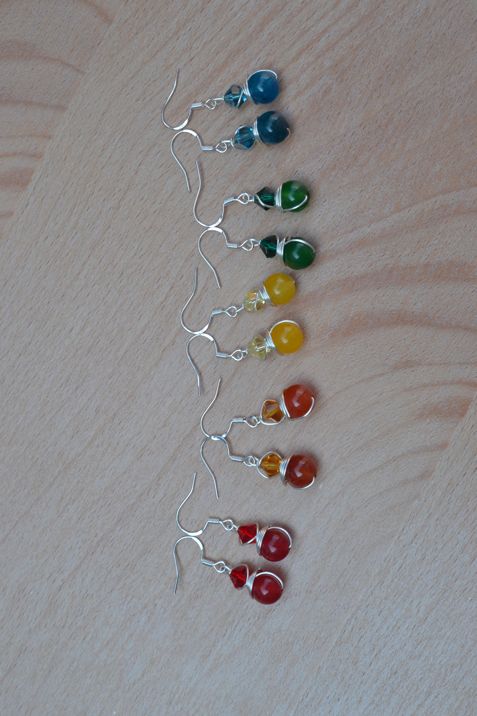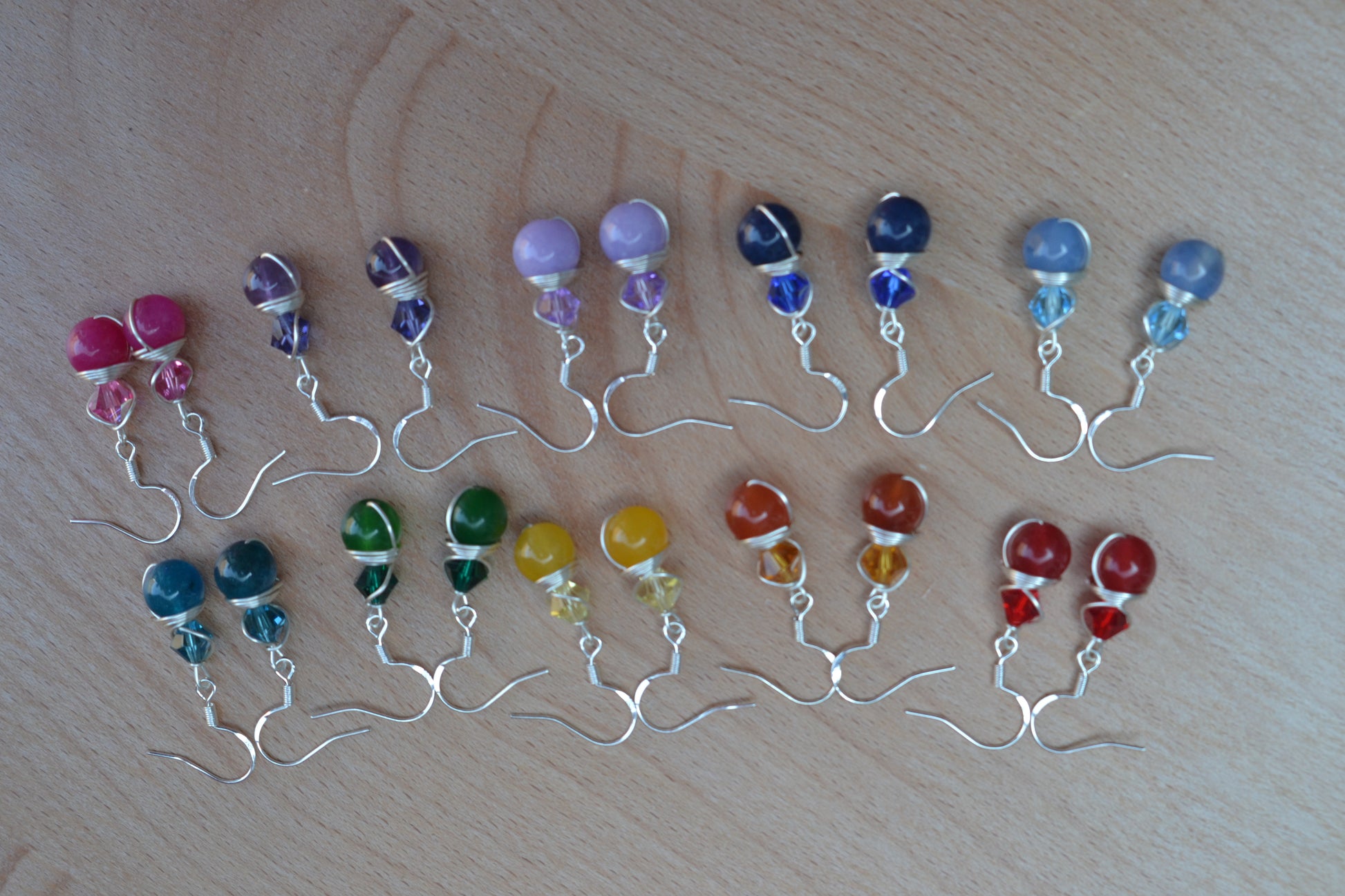 Thirteen pairs, one timeless design — each uniquely brought to life with vibrant crystals. The Spectrum Collection captures the full arc of color and energy, from grounding smoky quartz to radiant moonstone. Every pair features 8mm natural stones, wire-wrapped in silver-plated copper with sterling silver hooks, finished with a faceted crystal accent for extra shimmer. Whether you wear your birthstone, your favorite color, or choose by energy, these earrings are designed to bring balance, beauty, and intention to your everyday look.