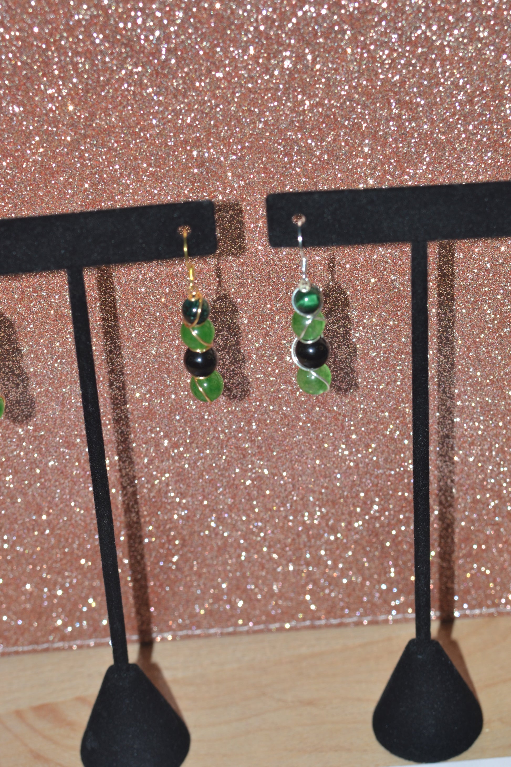 The Green Energy Earrings channel a fearless, magnetic power. The lime green aventurine sparks renewal and boldness, while obsidian grounds and protects. Tiger’s Eye adds strength and sharp focus, and crystal facets amplify your energy. Together, they create a striking balance of vibrancy and intensity — perfect for those who embody unstoppable drive and presence.
