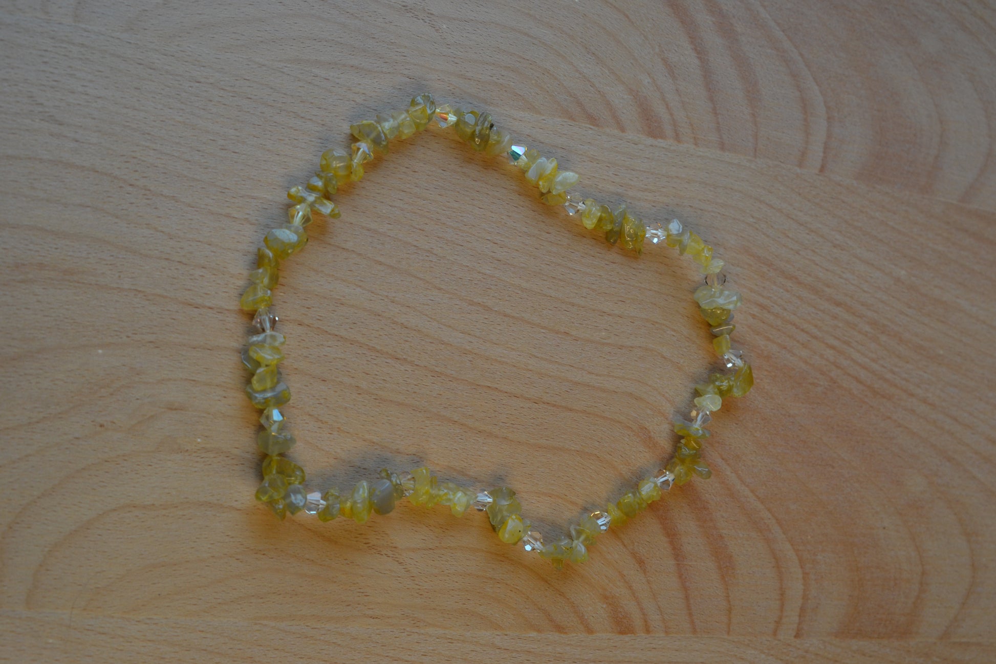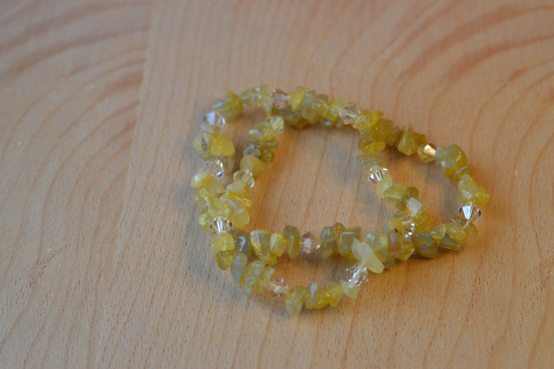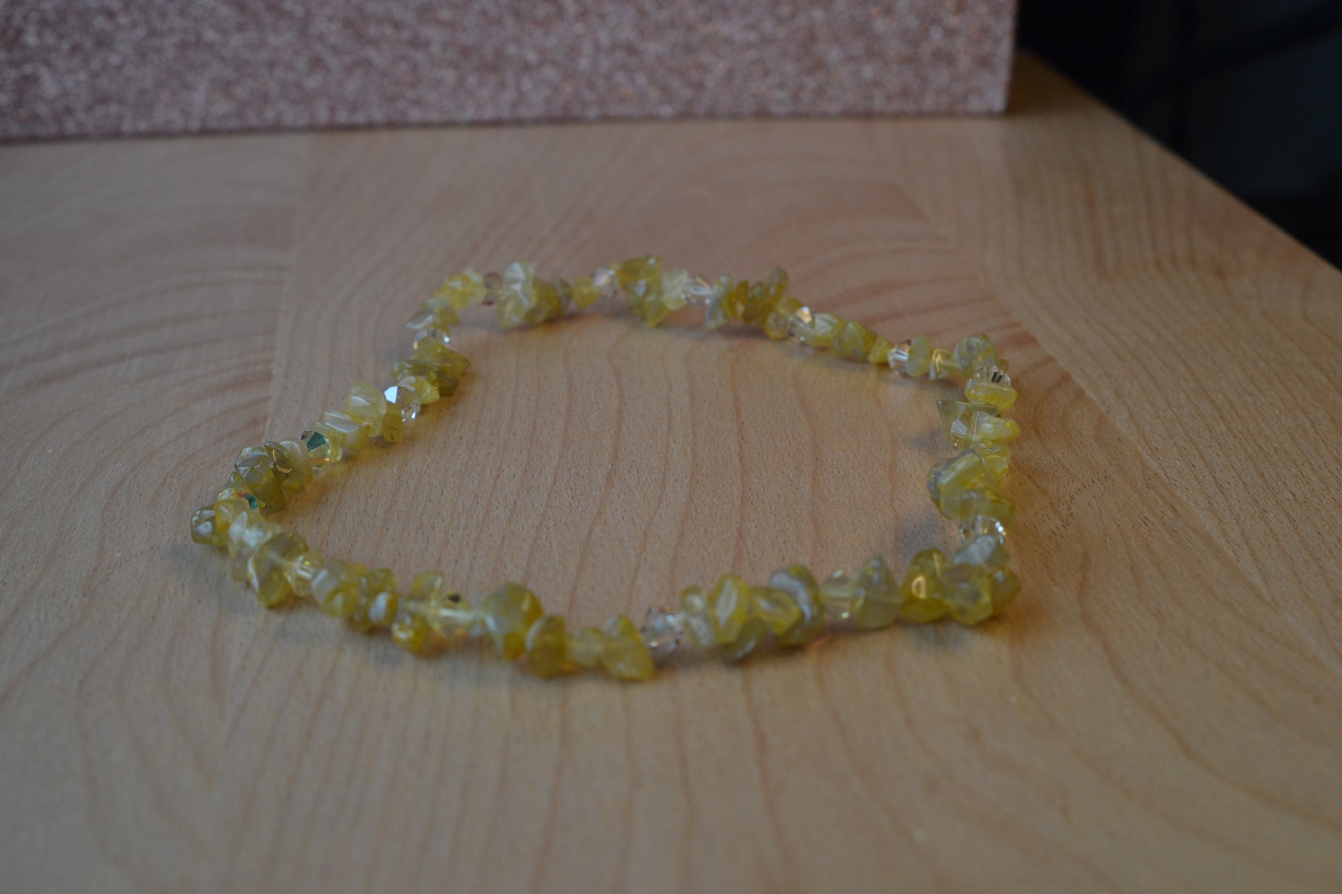 At 14 inches, it sits high on the neck for a true choker fit — glowing with natural yellow agate and sparkling crystal spacers that catch the light with every move.