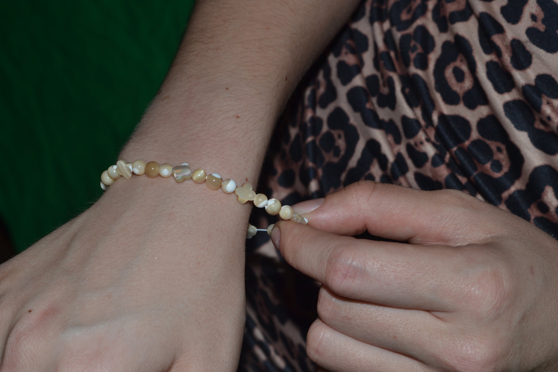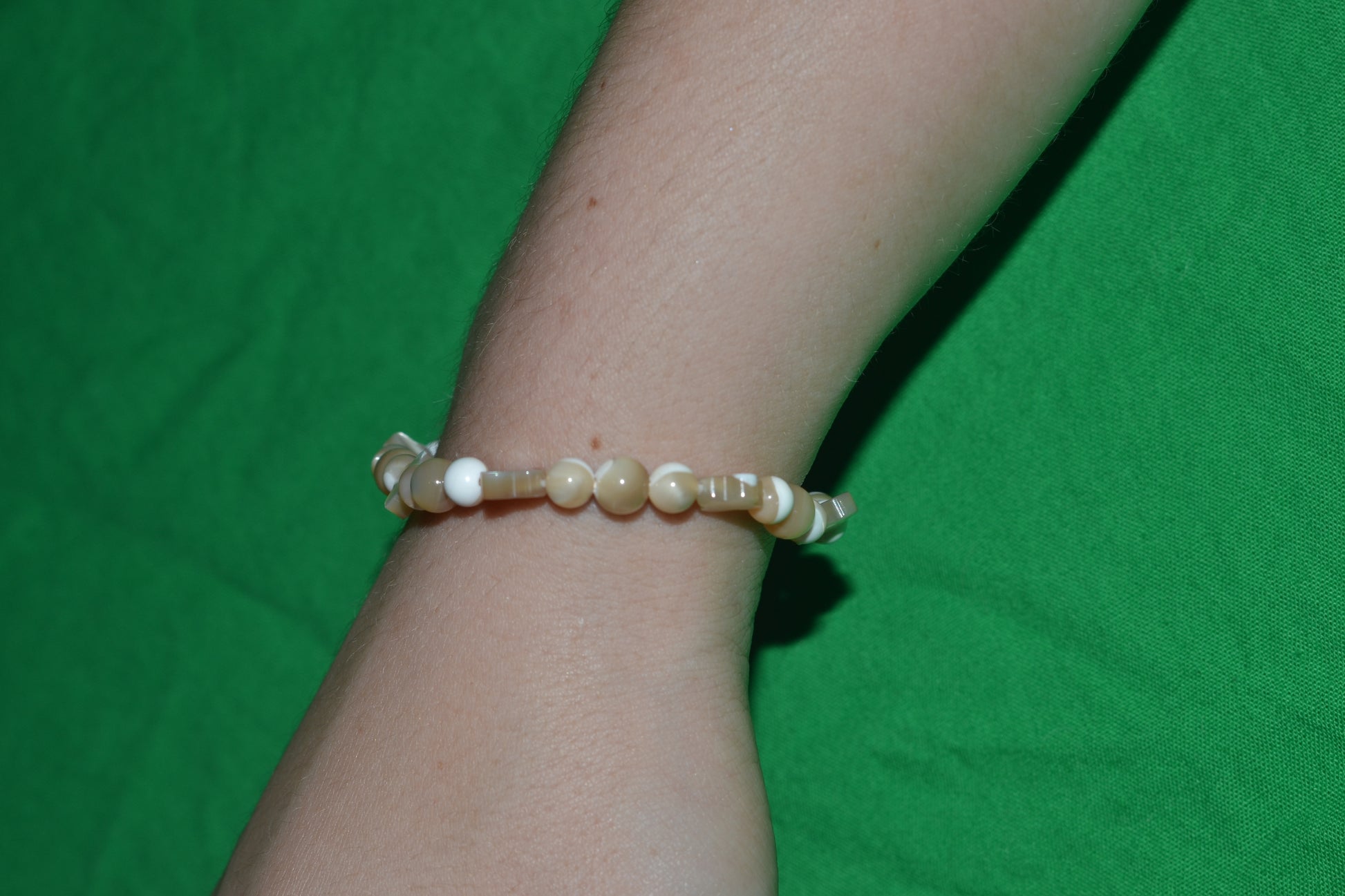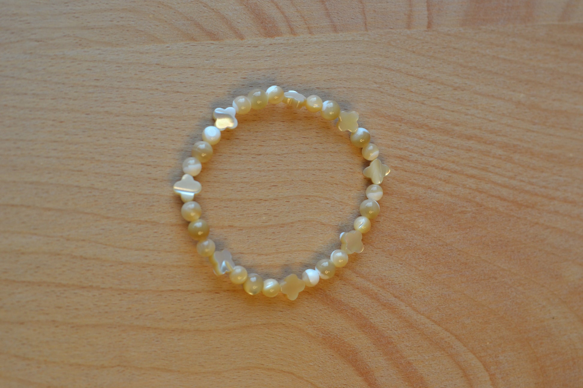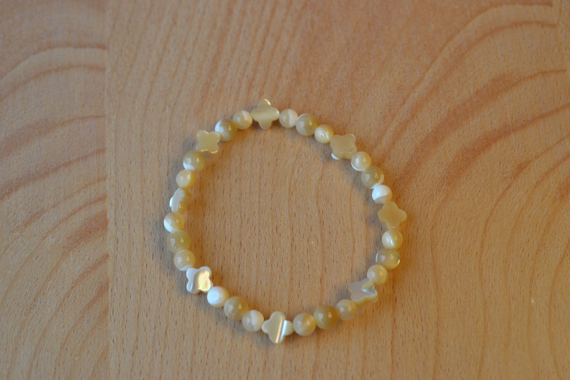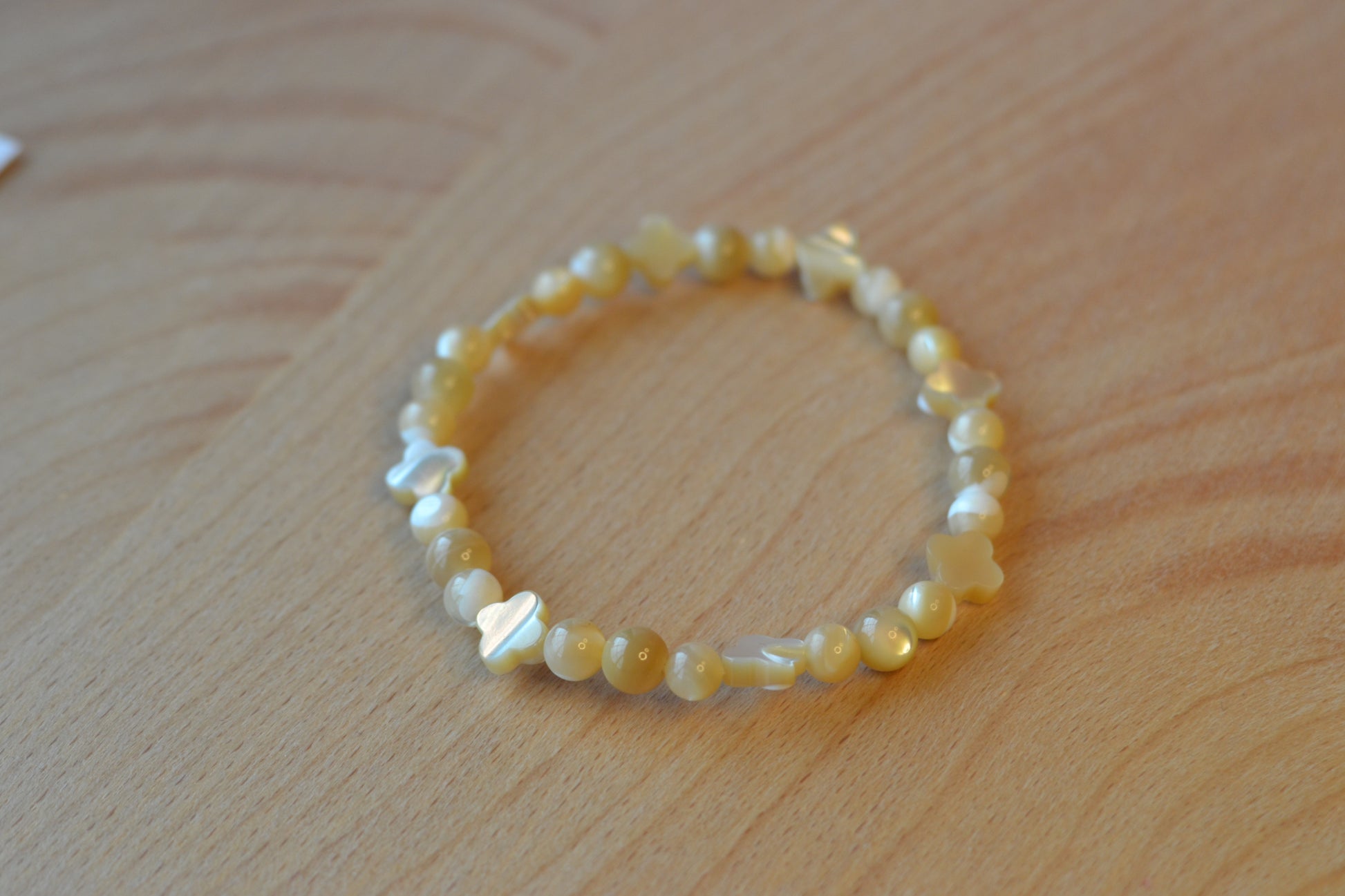 Materials: 2mm & 4mm yellow mother of pearl beads