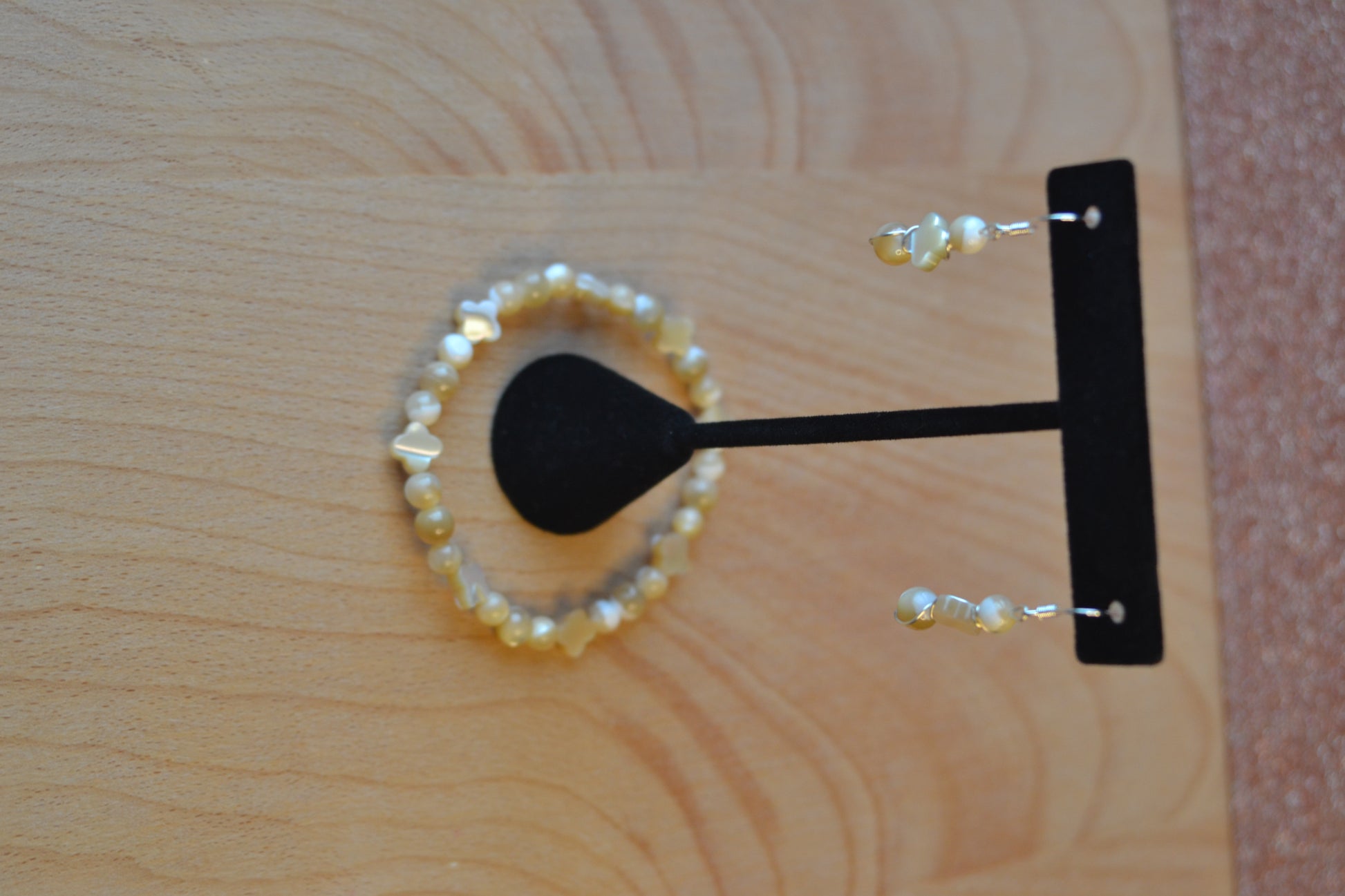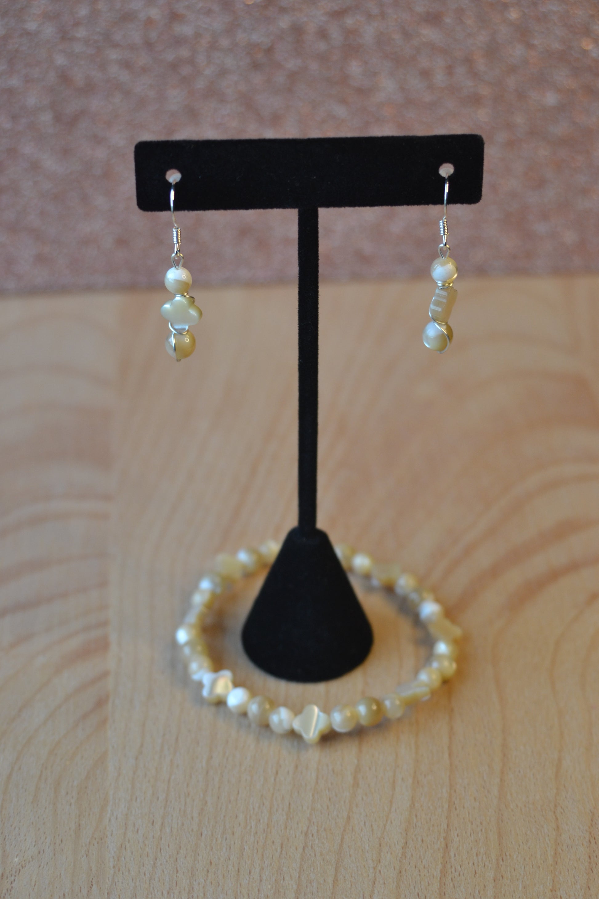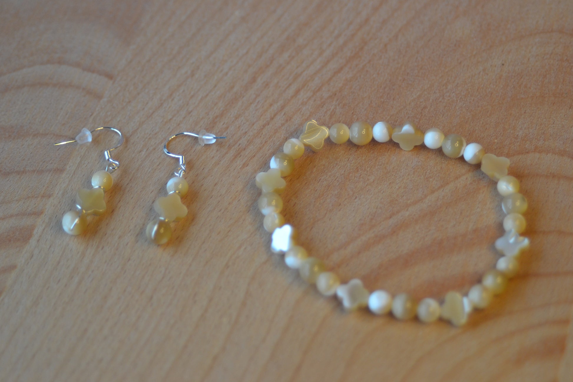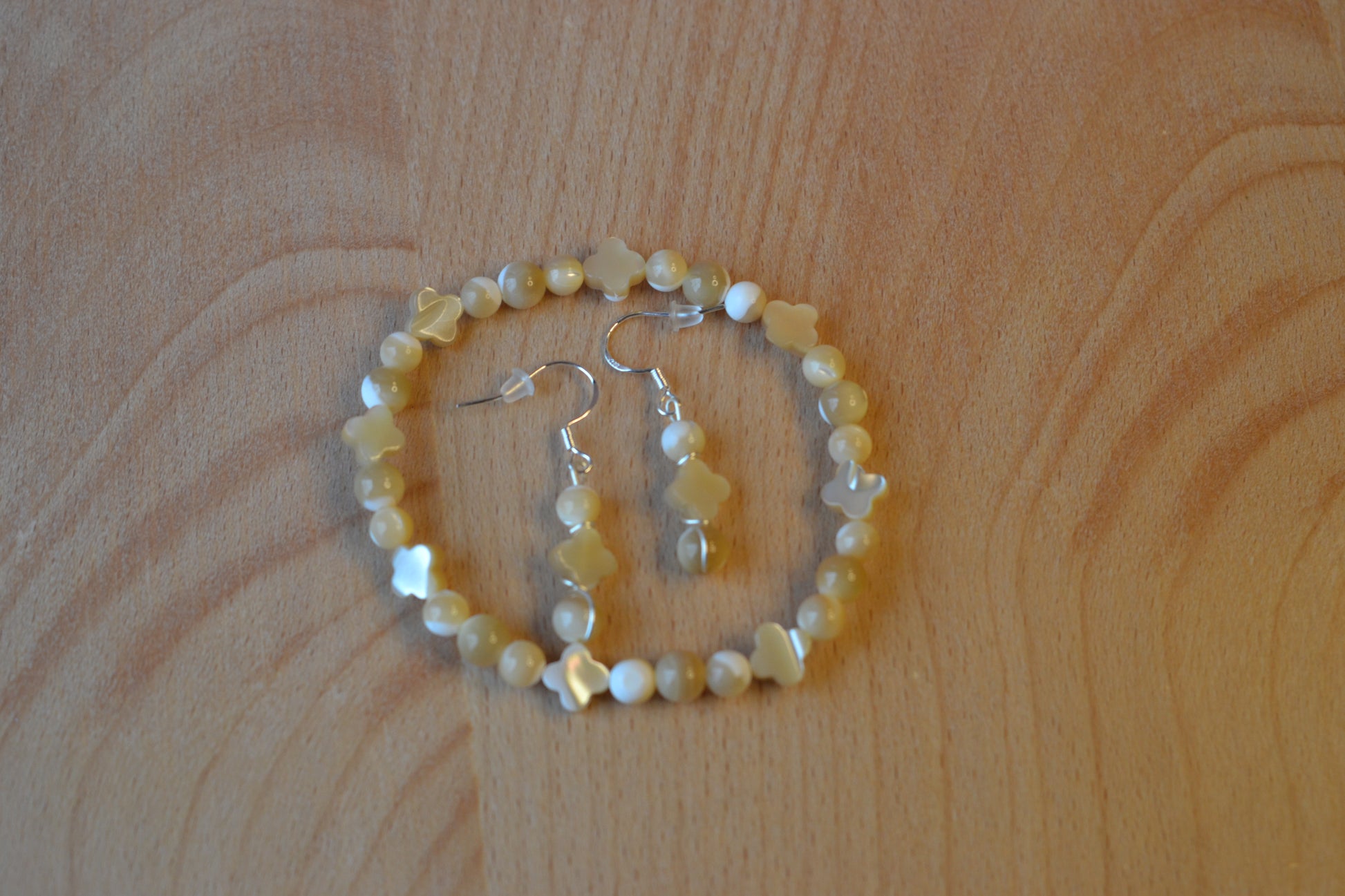 Yellow Mother of Pearl Bracelet & Earring Set – Sterling Silver Wrapped Luck & Light