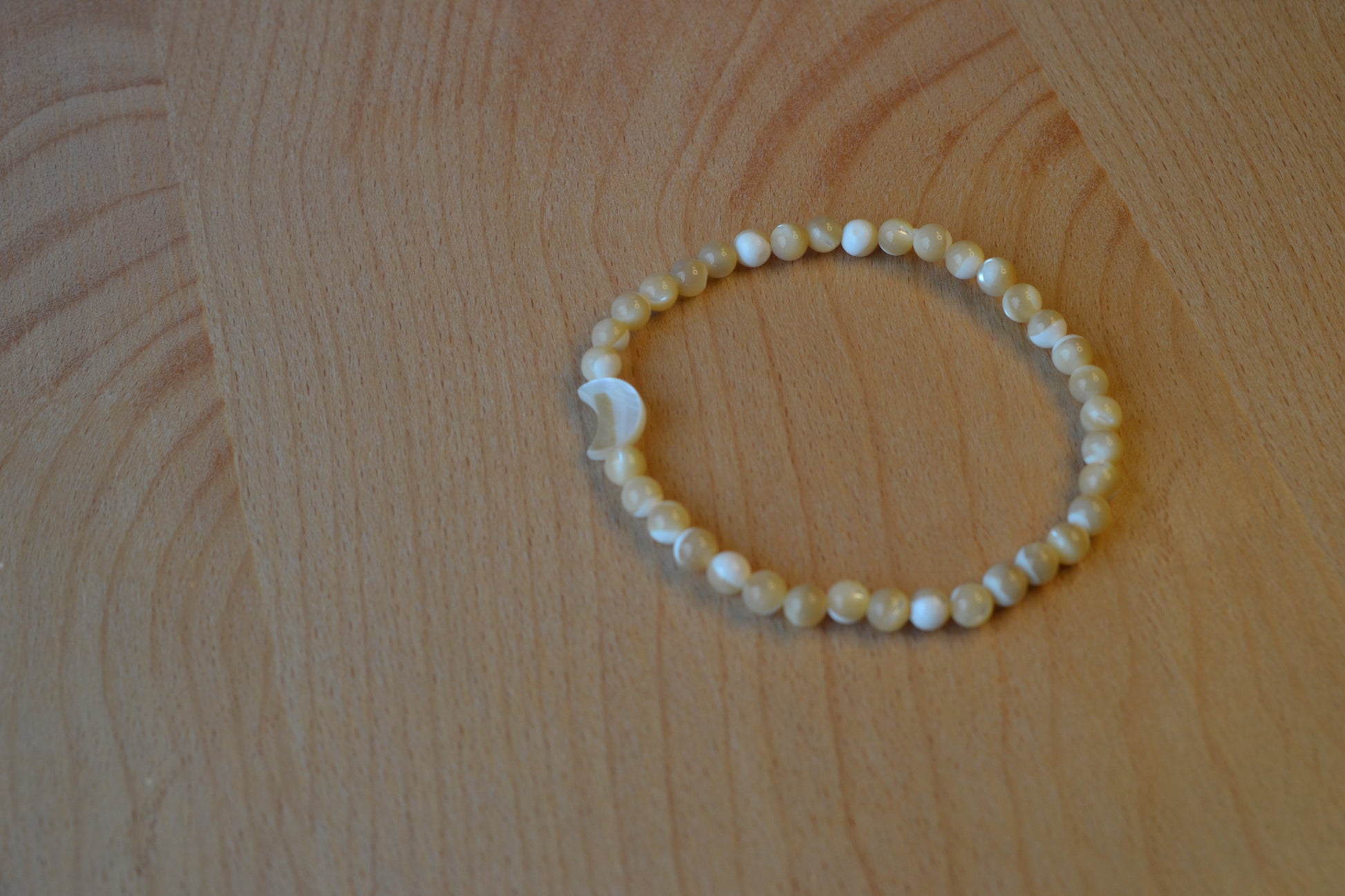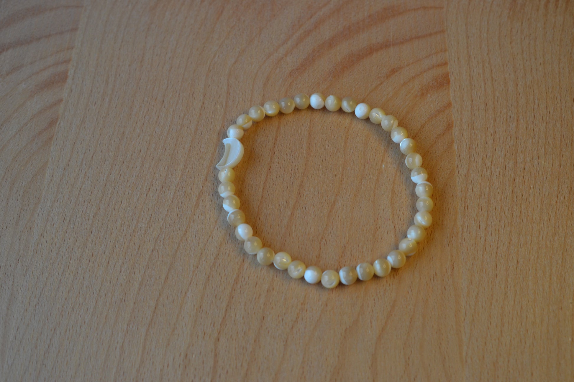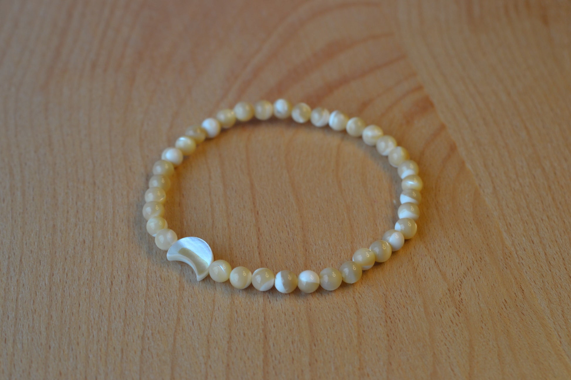 ☀️ Made with delicate 3mm yellow mother of pearl beads, this piece carries the energy of emotional renewal, inner peace, and feminine warmth. At its heart sits a single moon-shaped mother of pearl bead, symbolizing intuition, cycles, and gentle transformation.