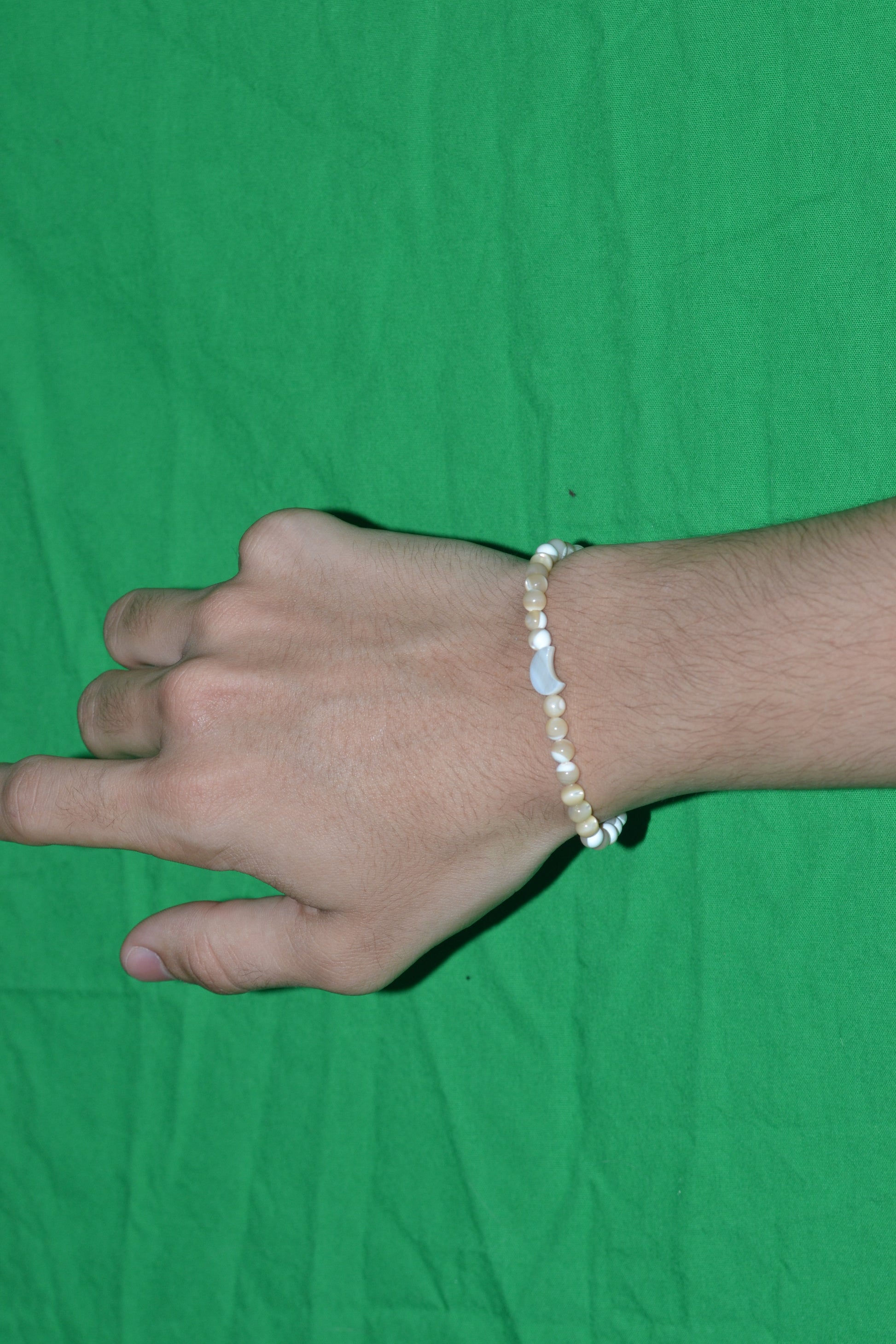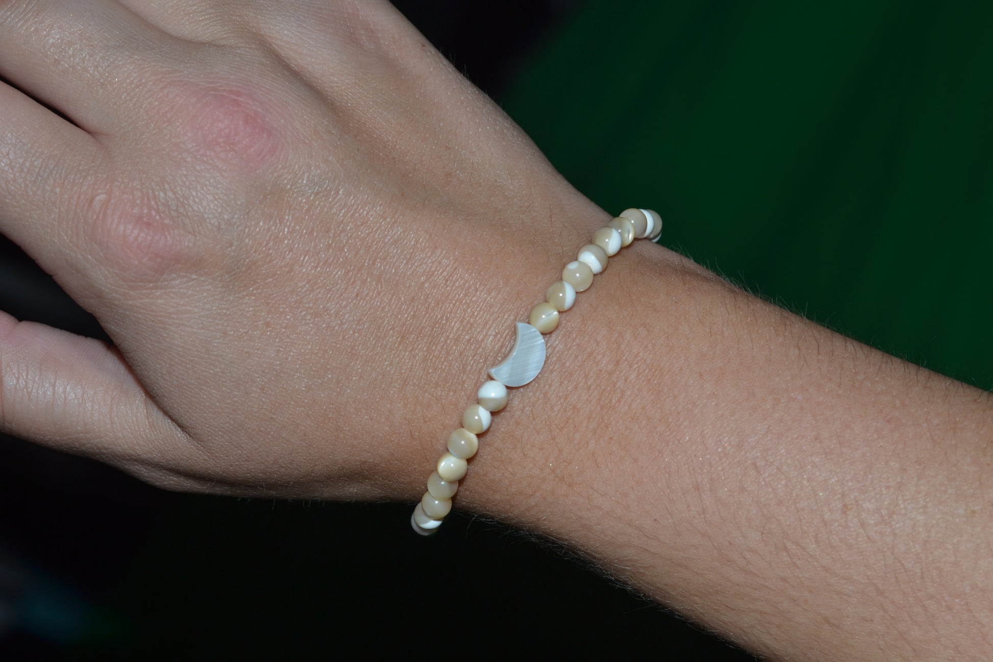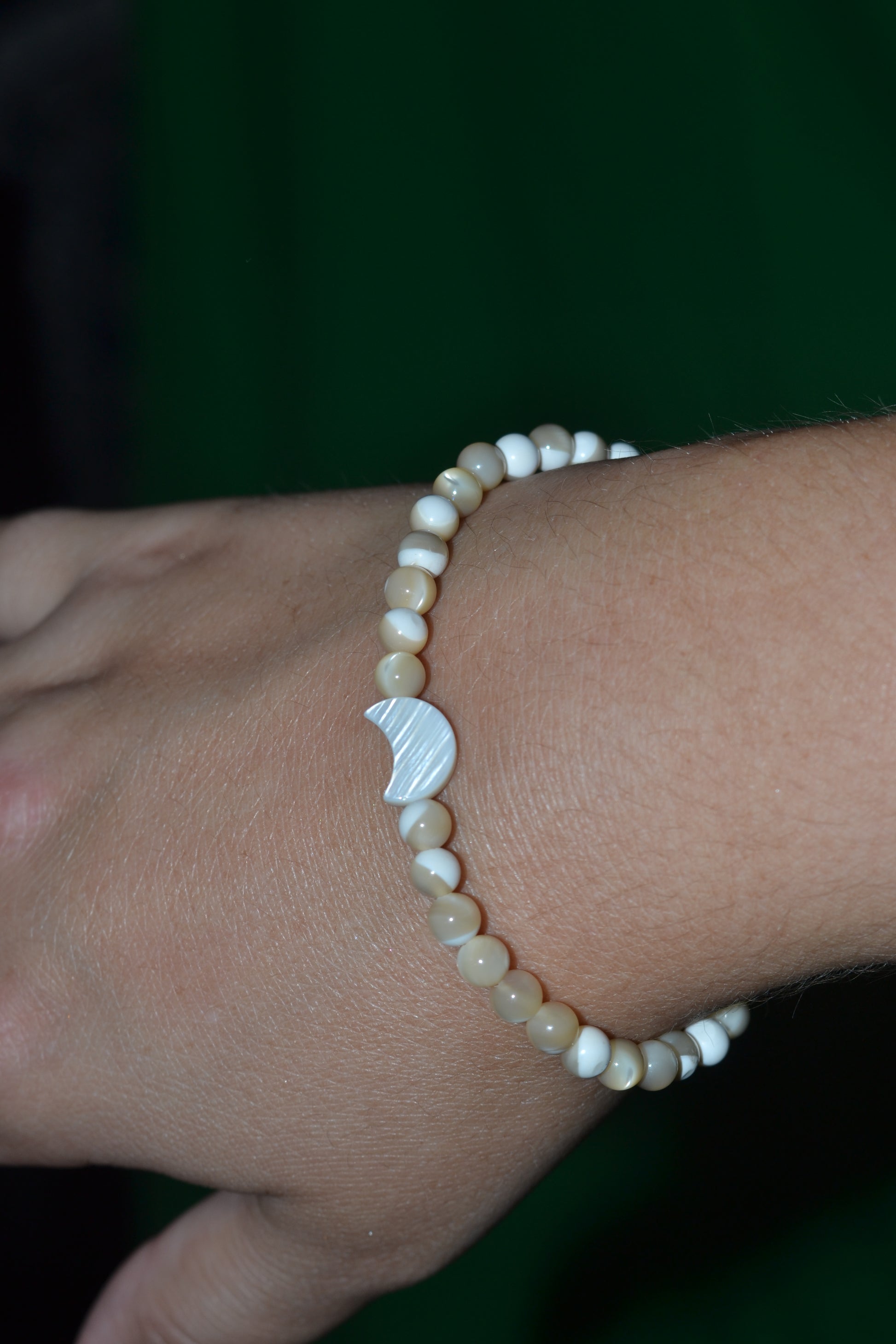 ☀️ Made with delicate 3mm yellow mother of pearl beads, this piece carries the energy of emotional renewal, inner peace, and feminine warmth. At its heart sits a single moon-shaped mother of pearl bead, symbolizing intuition, cycles, and gentle transformation.